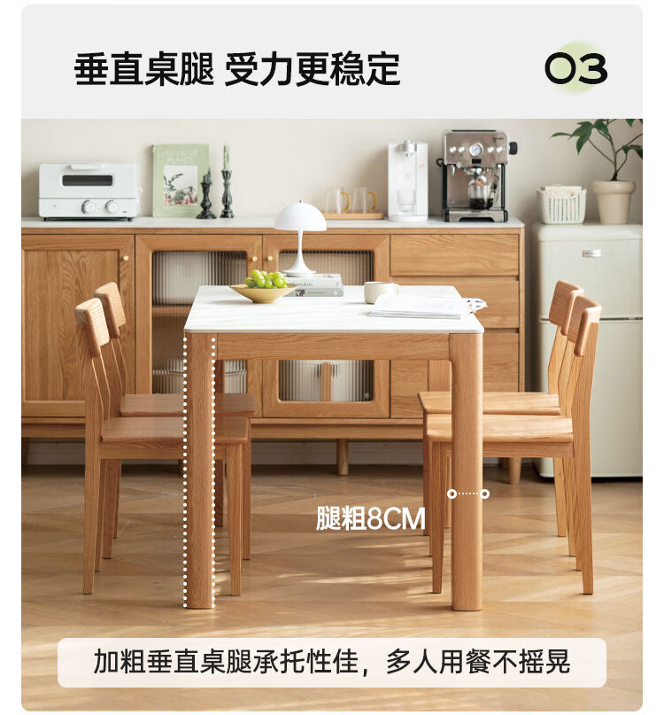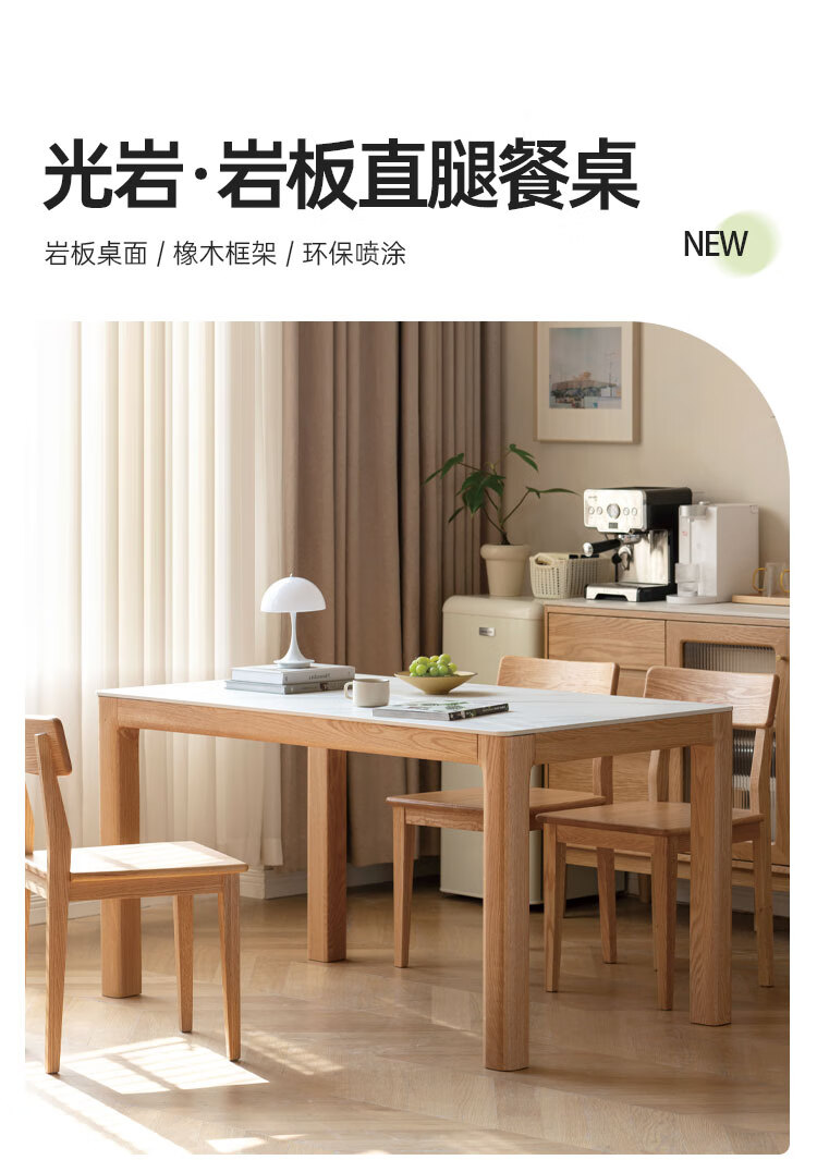 Genji Muyu solid wood slate dining table modern simple Nordic bedroom home log style dining table + dining chair + sideboard Jingxiangjia