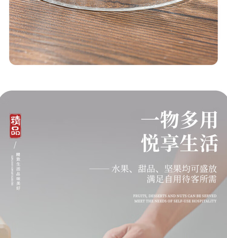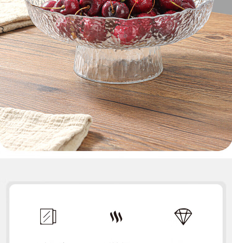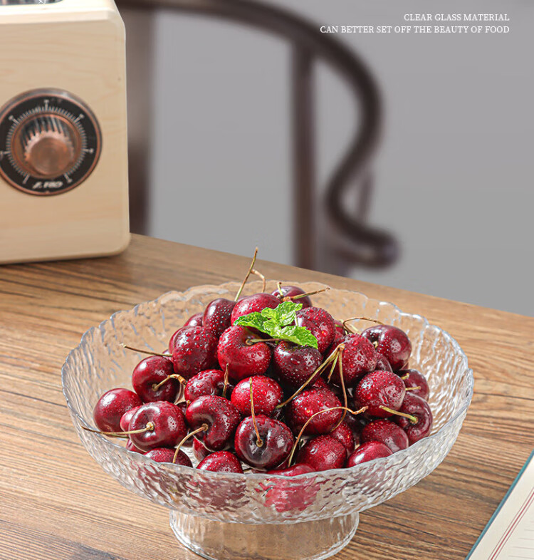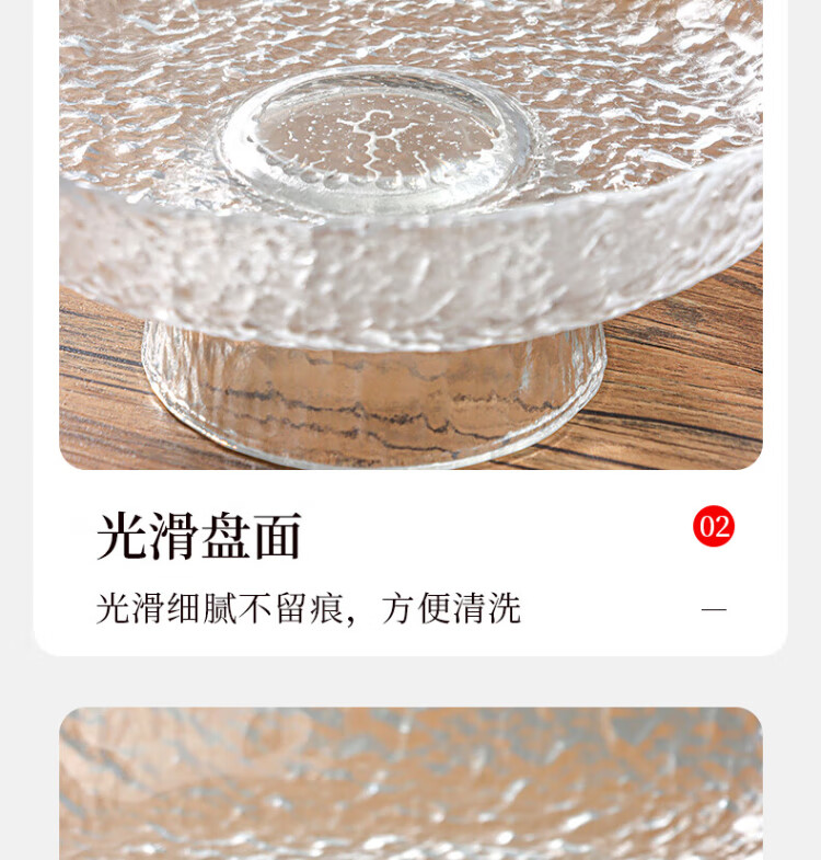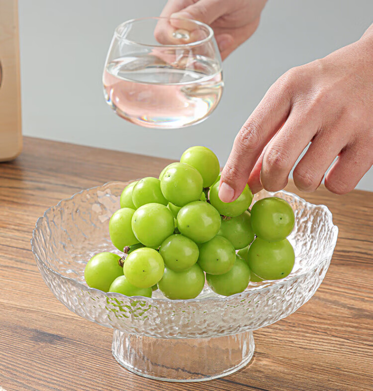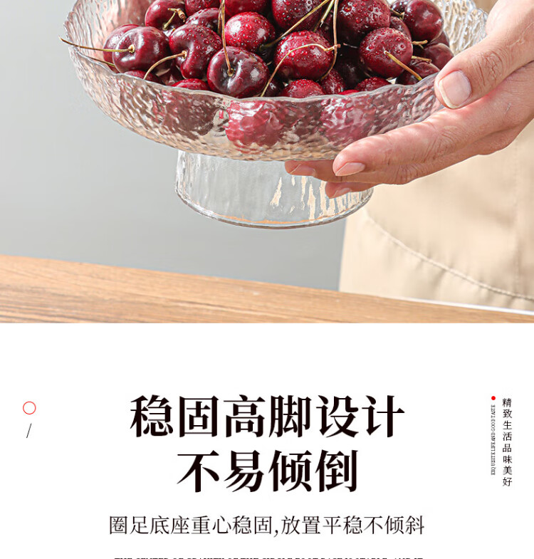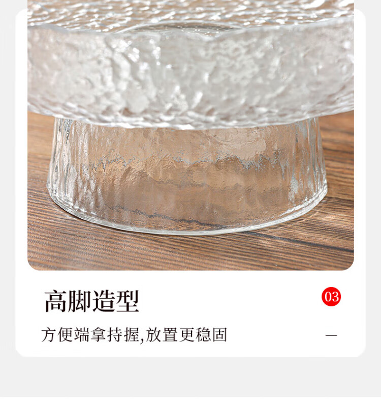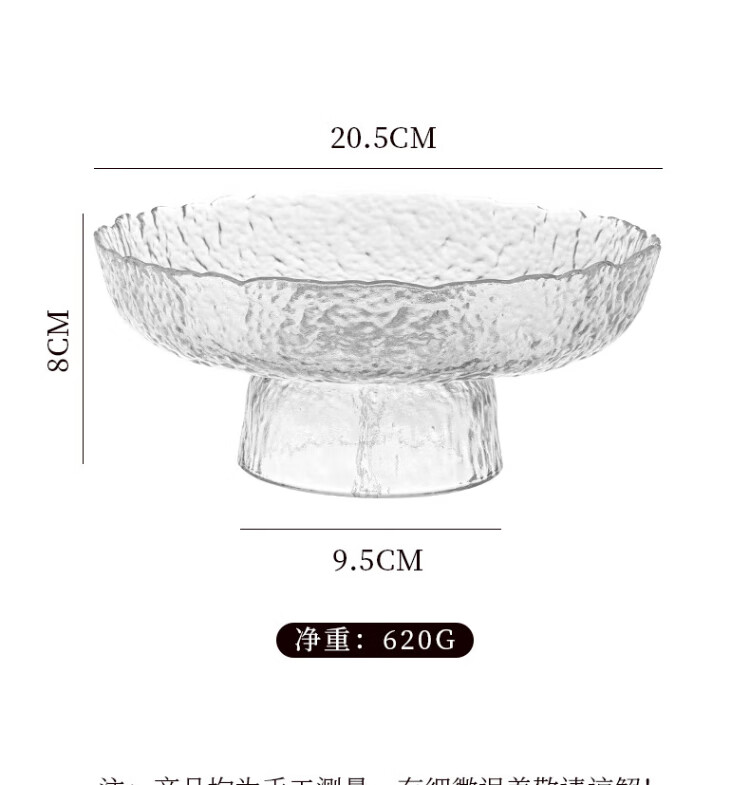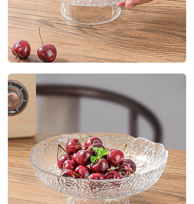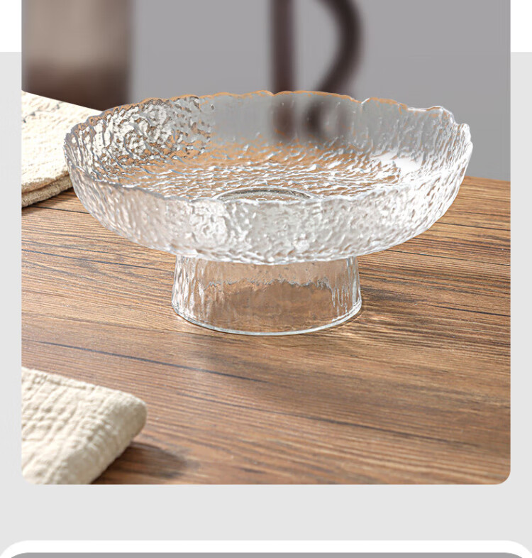 Baijie glass fruit plate tray light luxury living room snack plate dry fruit plate tea snack plate candy plate high-leg hammer pattern