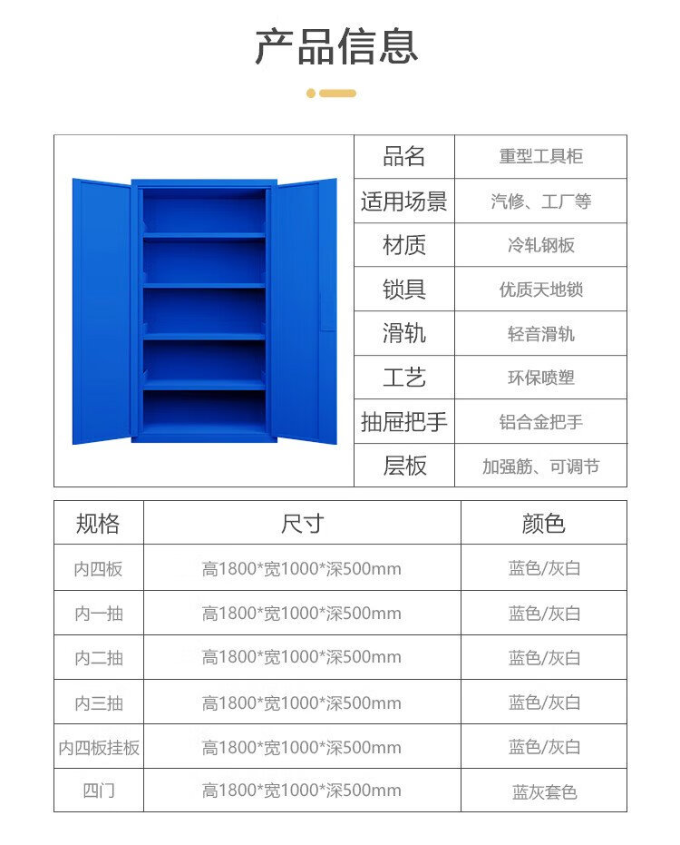 Kaiyuan Blue Tool Cabinet Five Layers Without Hanging Plate 1000*500*1800mm Heavy Duty Tool Cabinet Workshop Tool Storage Box Parts Cabinet Multi-Layer With Hanging Plate KY-GJG05