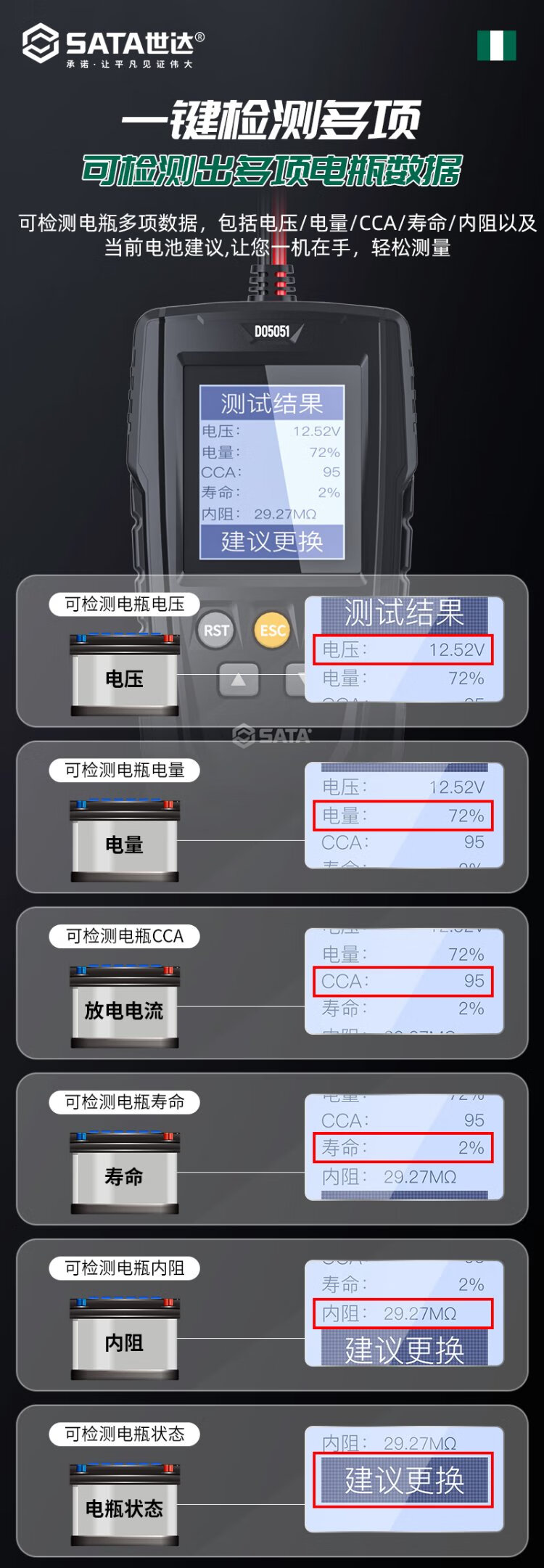 Shida SATA car battery tester electric car battery car 12v24v battery internal resistance tester D05051