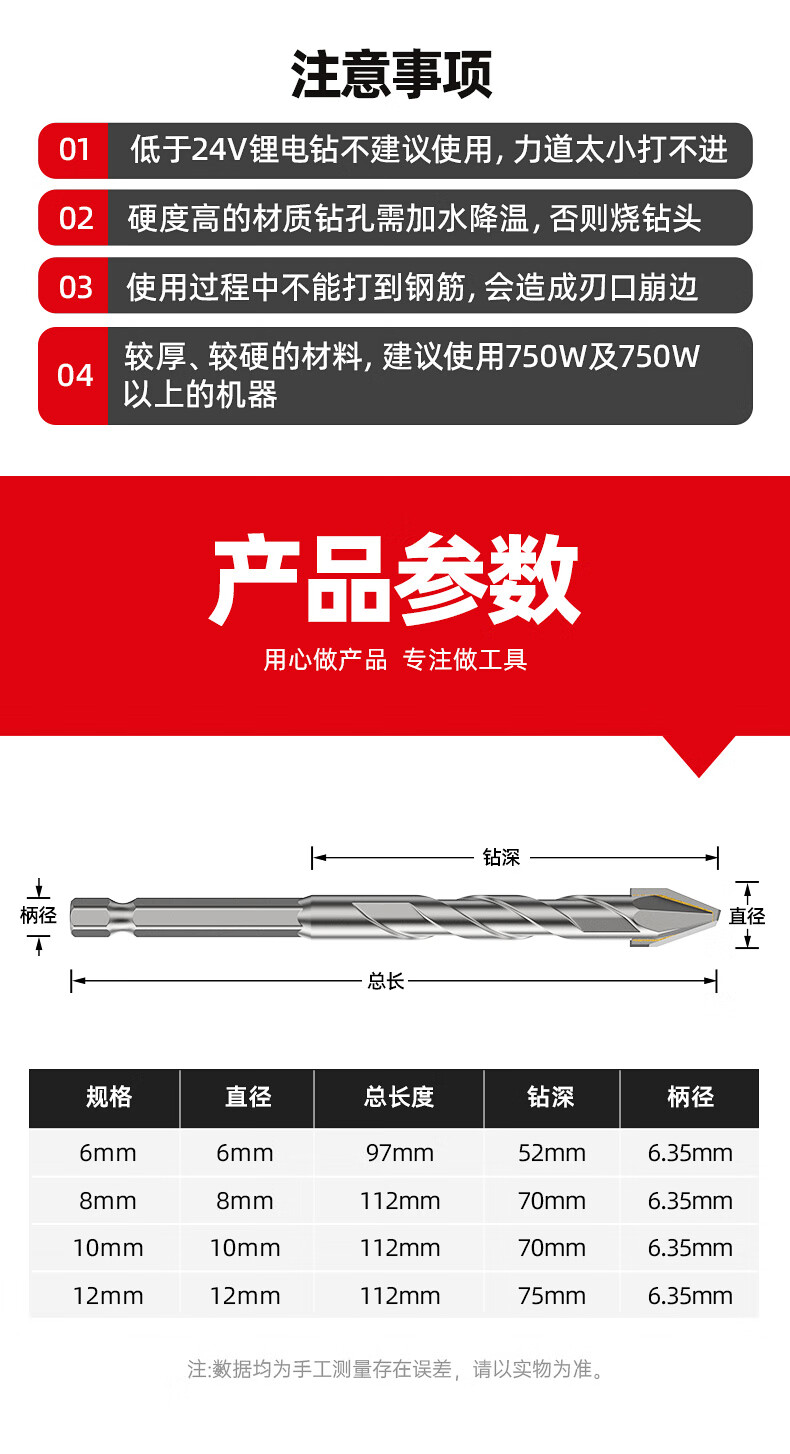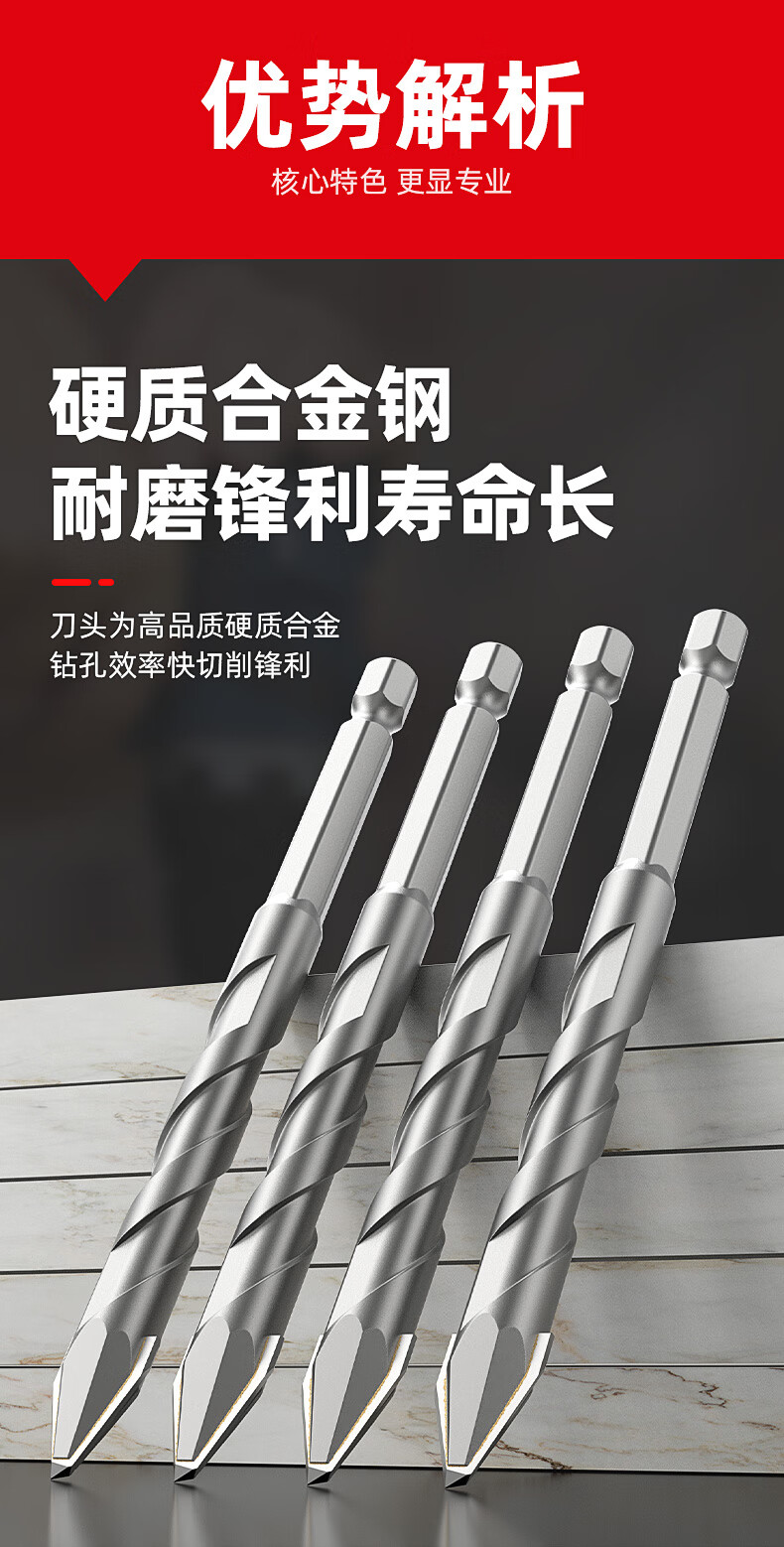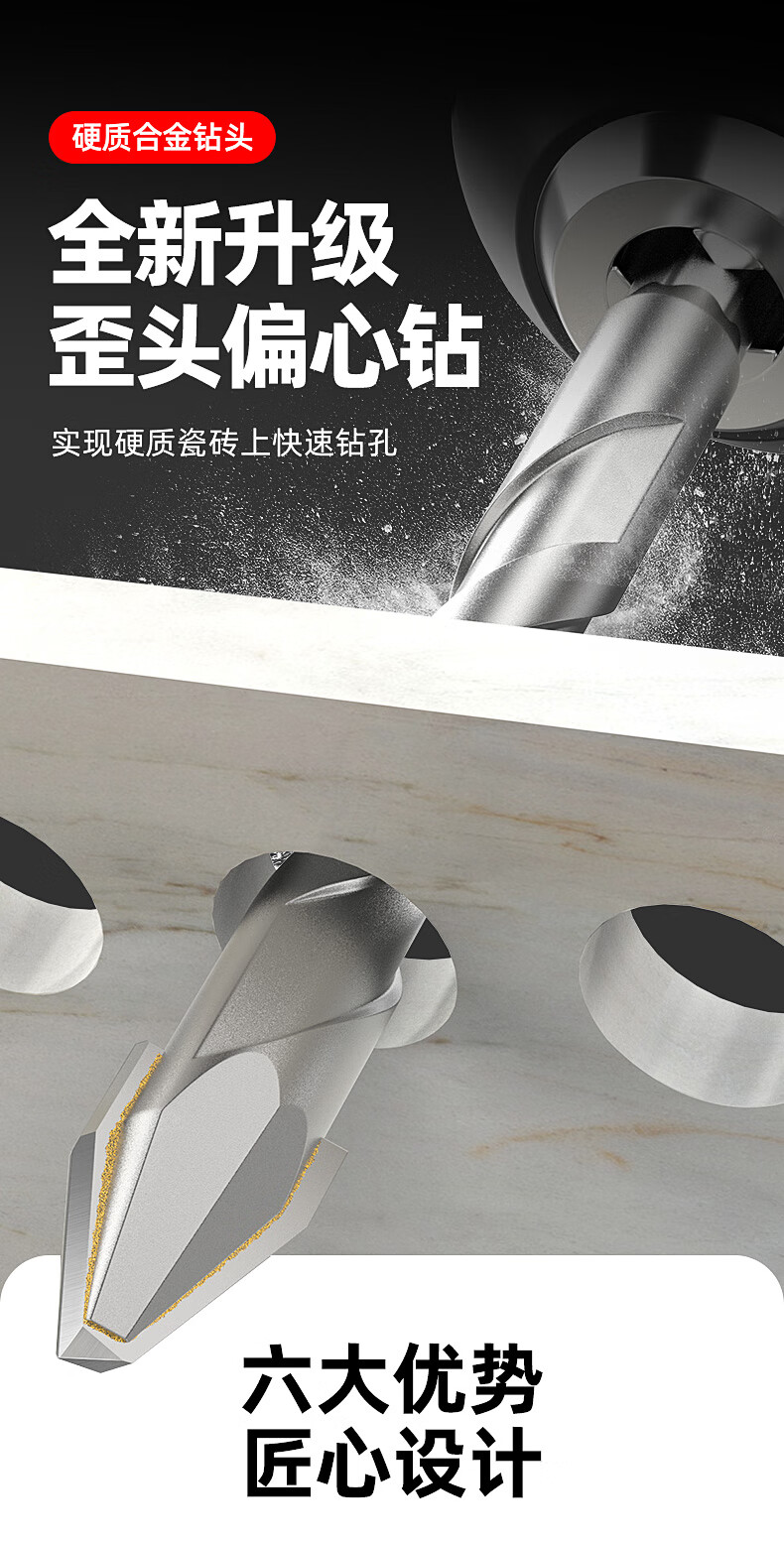 HUHAO super-hard ceramic tilt-head eccentric drill bit for all-ceramic tiles alloy triangular drilling rotor 6+6+8+8mm