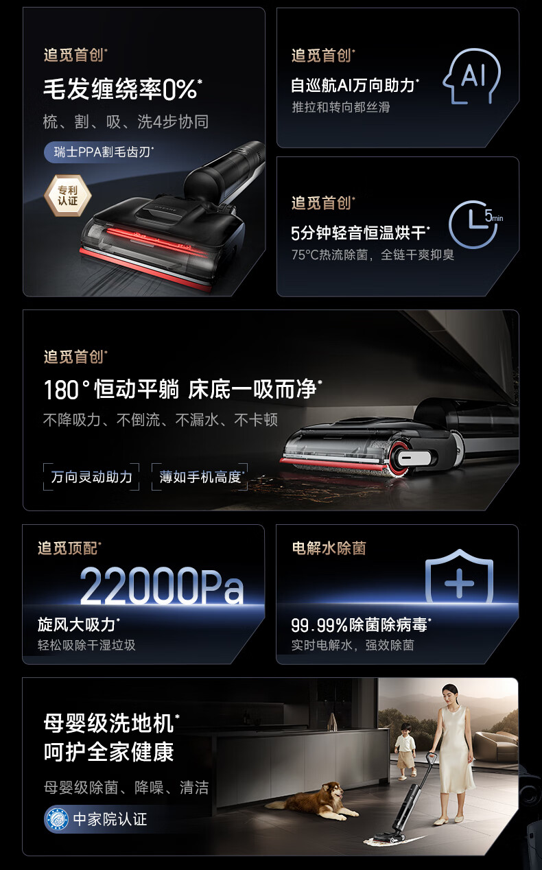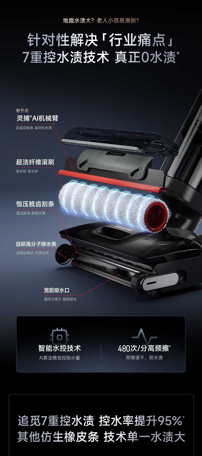 Chai Mi Guardian Floor Washing Machine T40 Ultra 0 Water Damage AI Robotic Arm 180 Flat Laying Three Welts Hair Anti-Tangle Dry and Wet Separation Automatic Cleaning Electric Mop