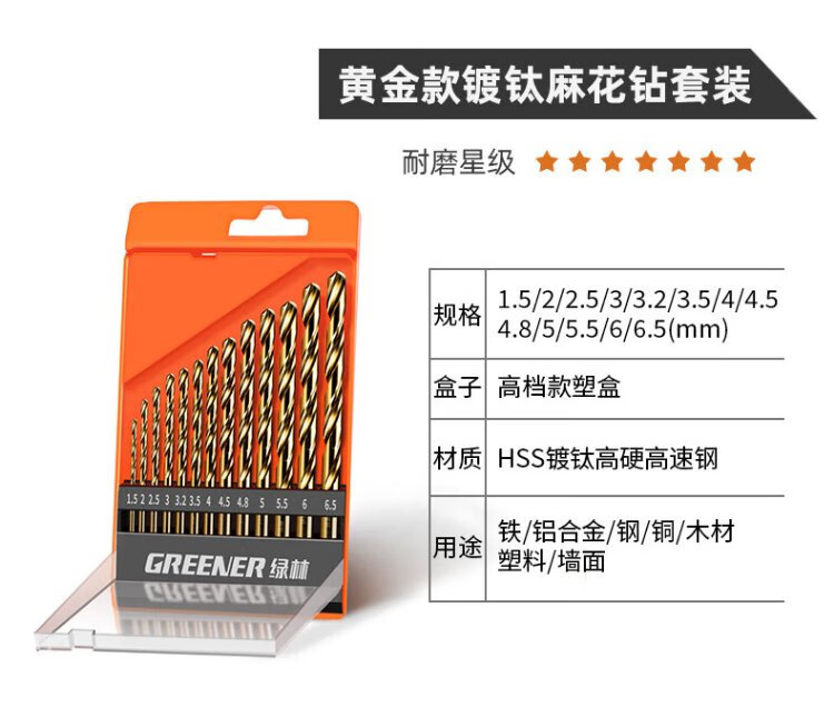 Green Forest Twist Drill Bit Set Aluminum Alloy Concrete Drilling Metal Set Hand Electric Drill Turn Industrial Style 13-piece Set
