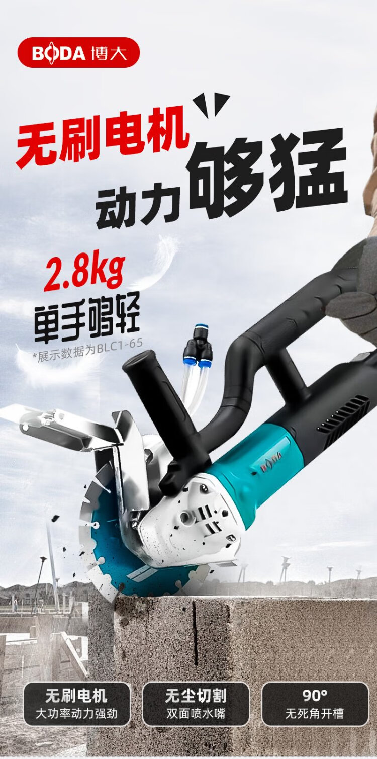 Boda brushless slotting machine, dust-free wire troughing machine, water and electricity installation, one-time molding, high-power wall concrete cutting machine