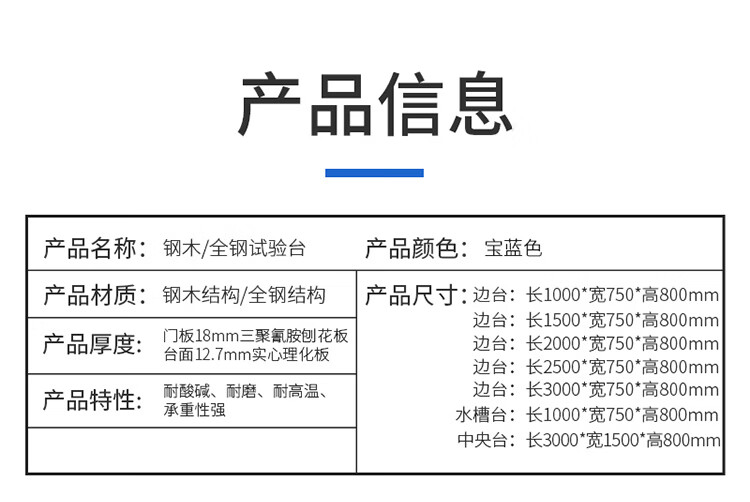 Kaiyuan Laboratory Workbench All Steel Corrosion Resistant Acid and Alkali Resistant High Temperature Operation Bench Experiment Table All Steel 2000*750*800mm KY-SYT08