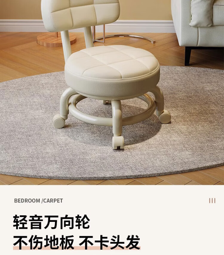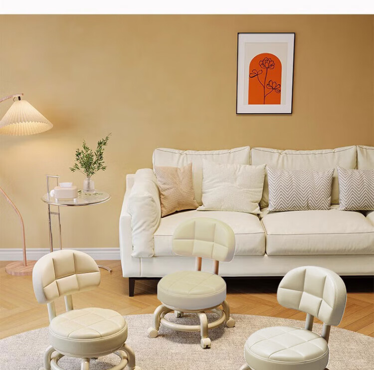 Gasgoo small stool, universal wheel small bench, mobile pulley, beautiful seam sofa stool, living room low stool, home shoe changing stool for adults