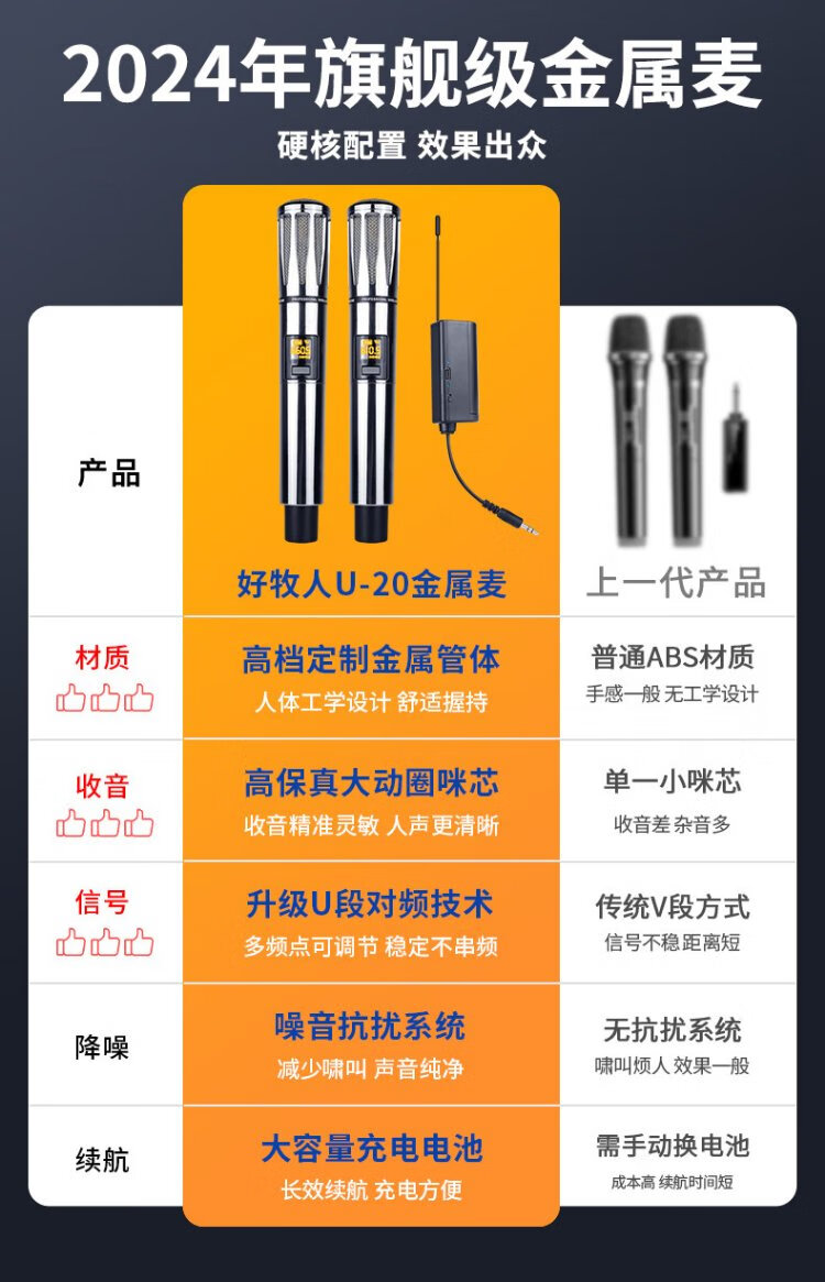 Good Shepherd Microphone Wireless Microphone Home KTV Singing Stage Hosting Conference Speech Outdoor K Song TV Speaker Amplifier Audio Anti-Howling Metal Charging Professional Universal Universal