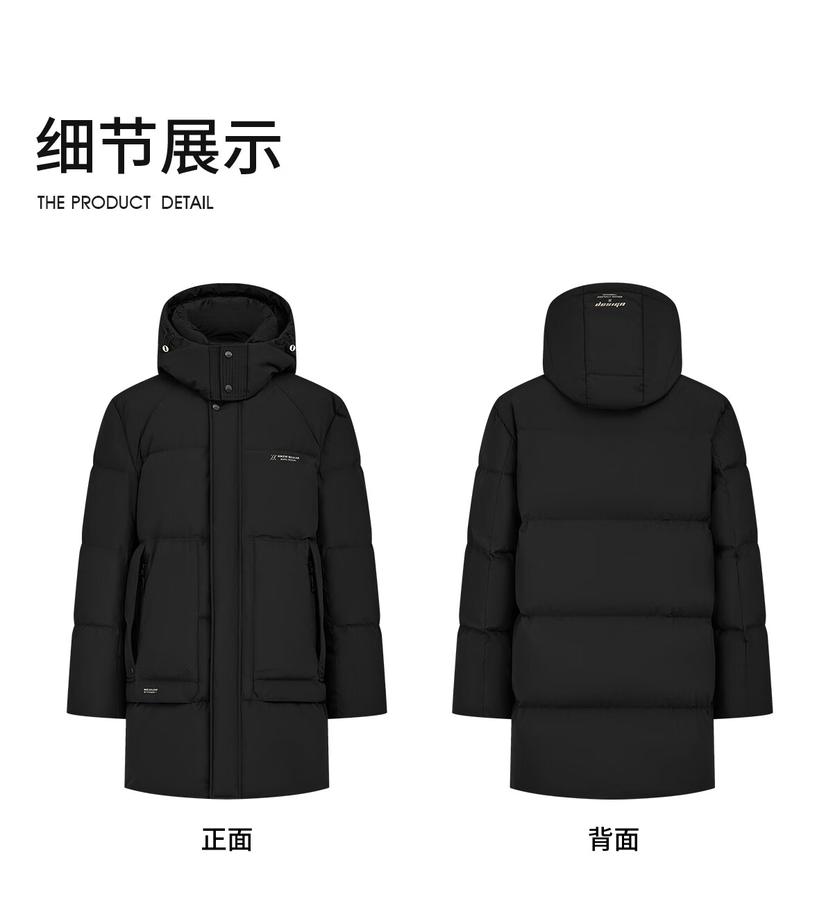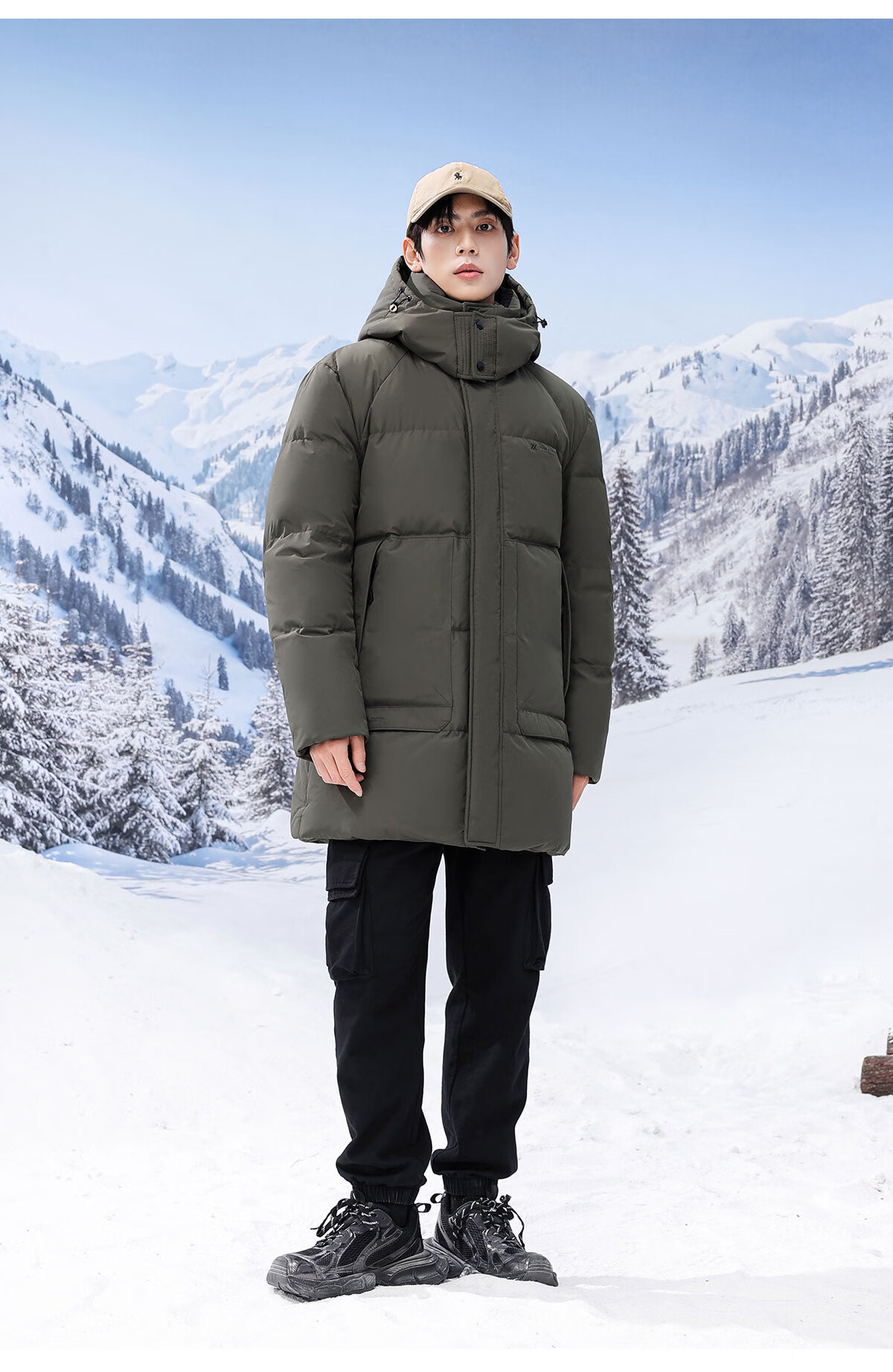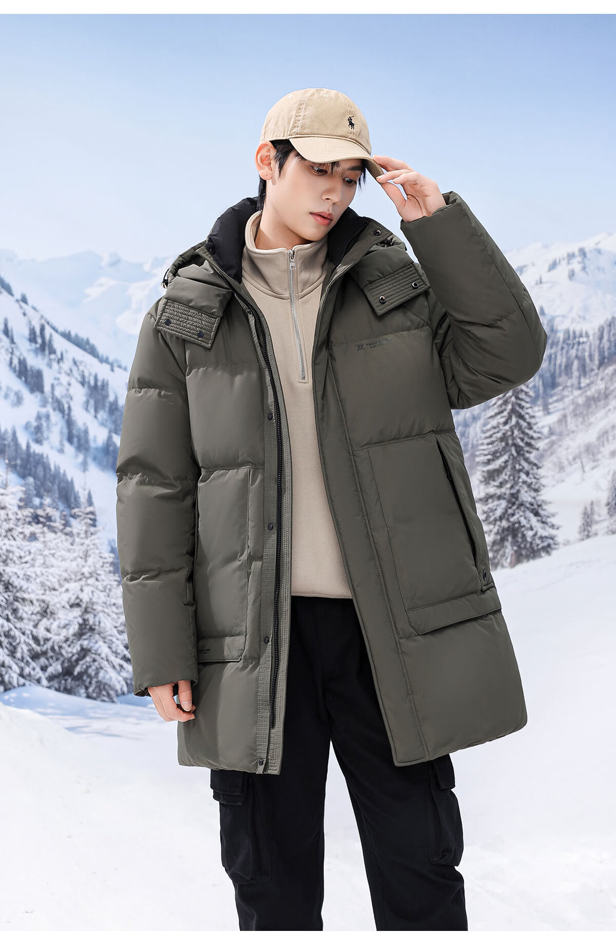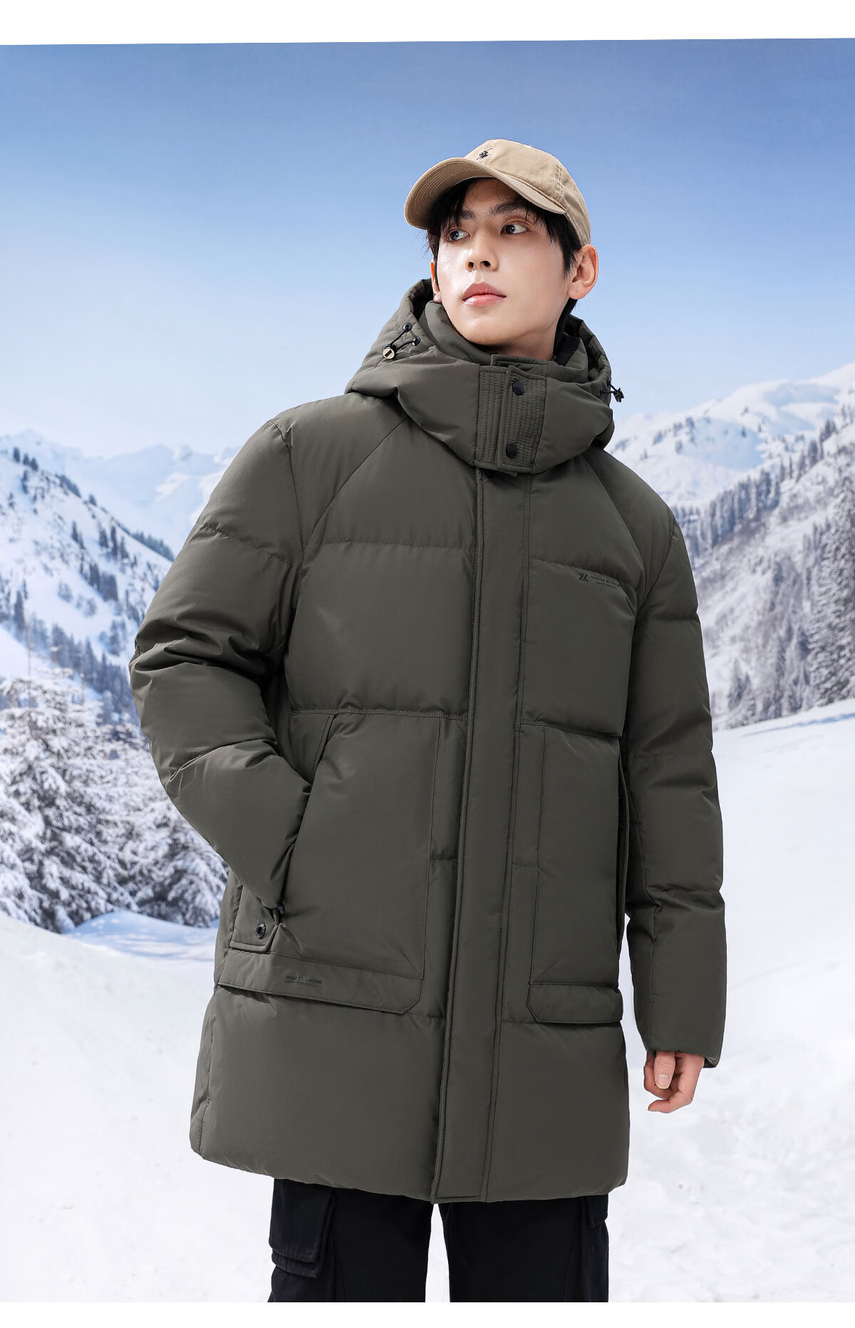 Flying in the Snow Men's Mid-Length Down Jacket 2025 New Letter Printed Hooded Fashionable Warm Jacket Gemstone Black XL