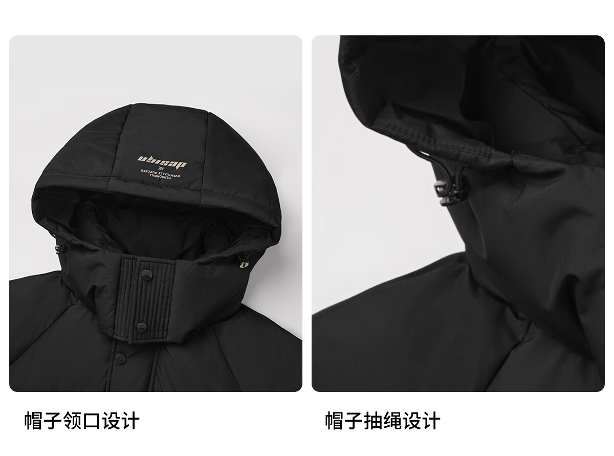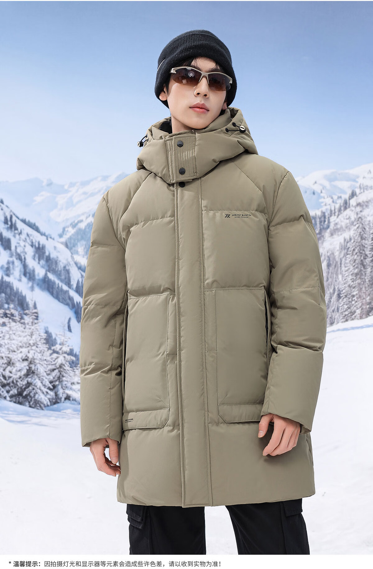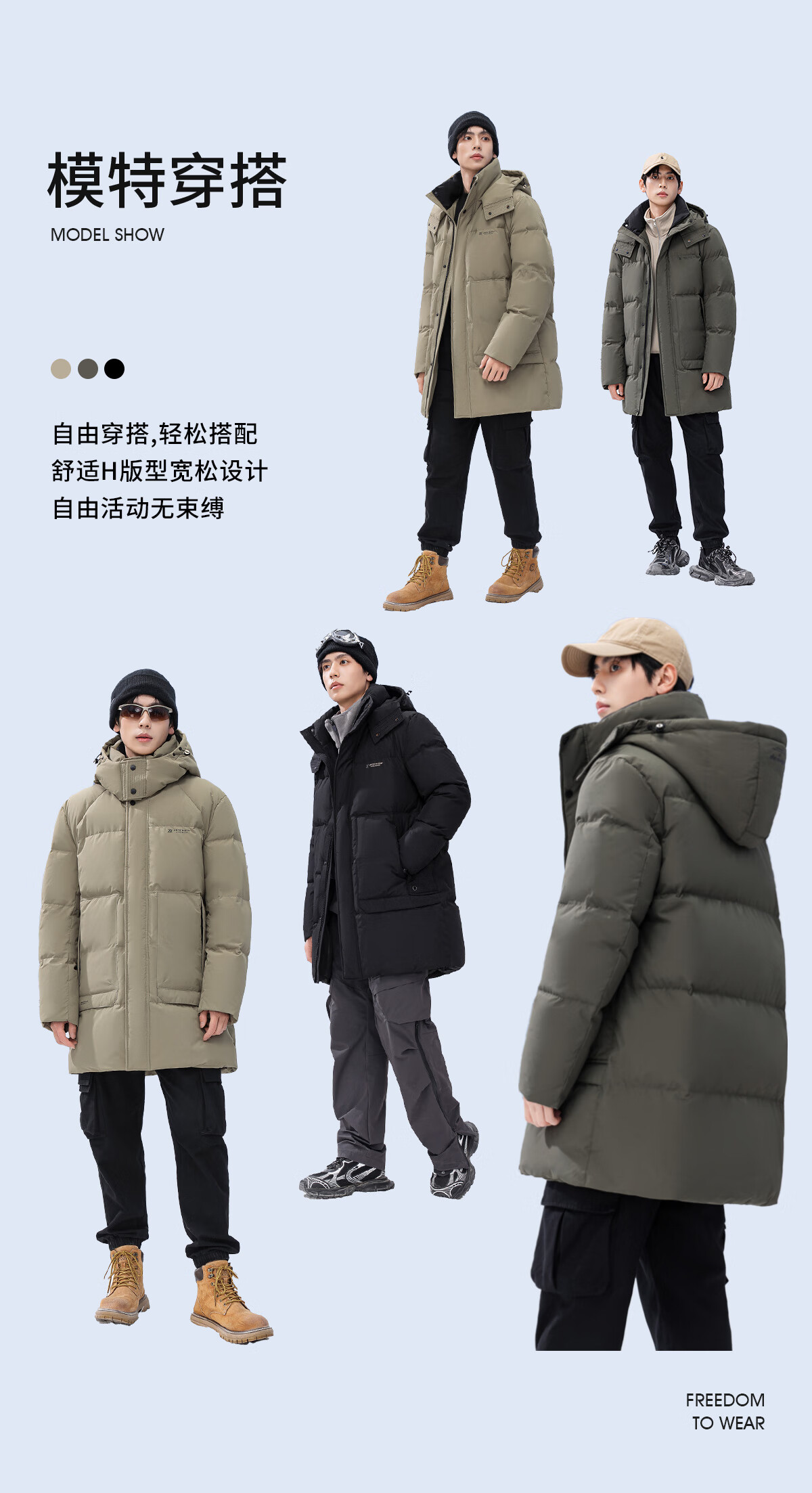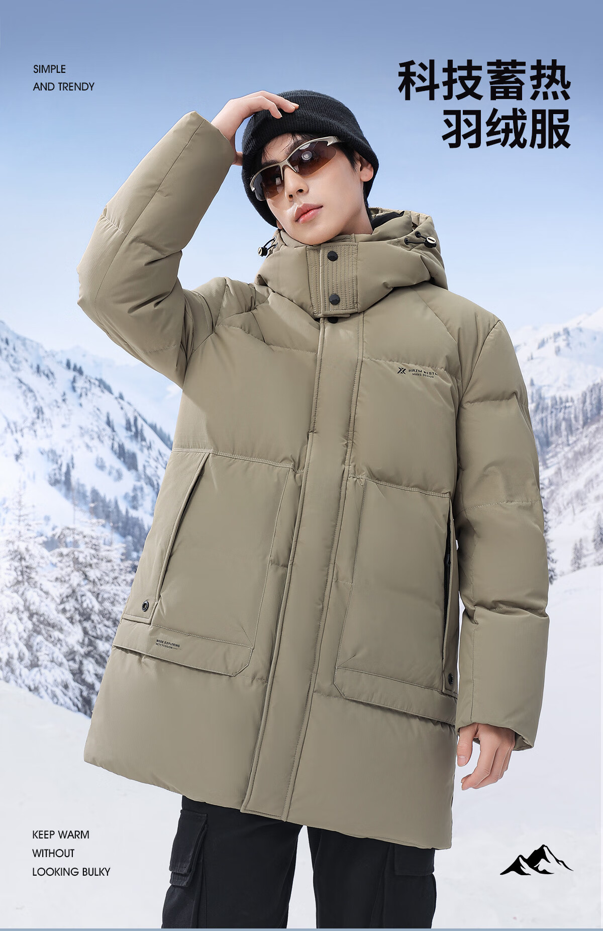 Flying in the Snow Men's Mid-Length Down Jacket 2025 New Letter Printed Hooded Fashionable Warm Jacket Gemstone Black XL
