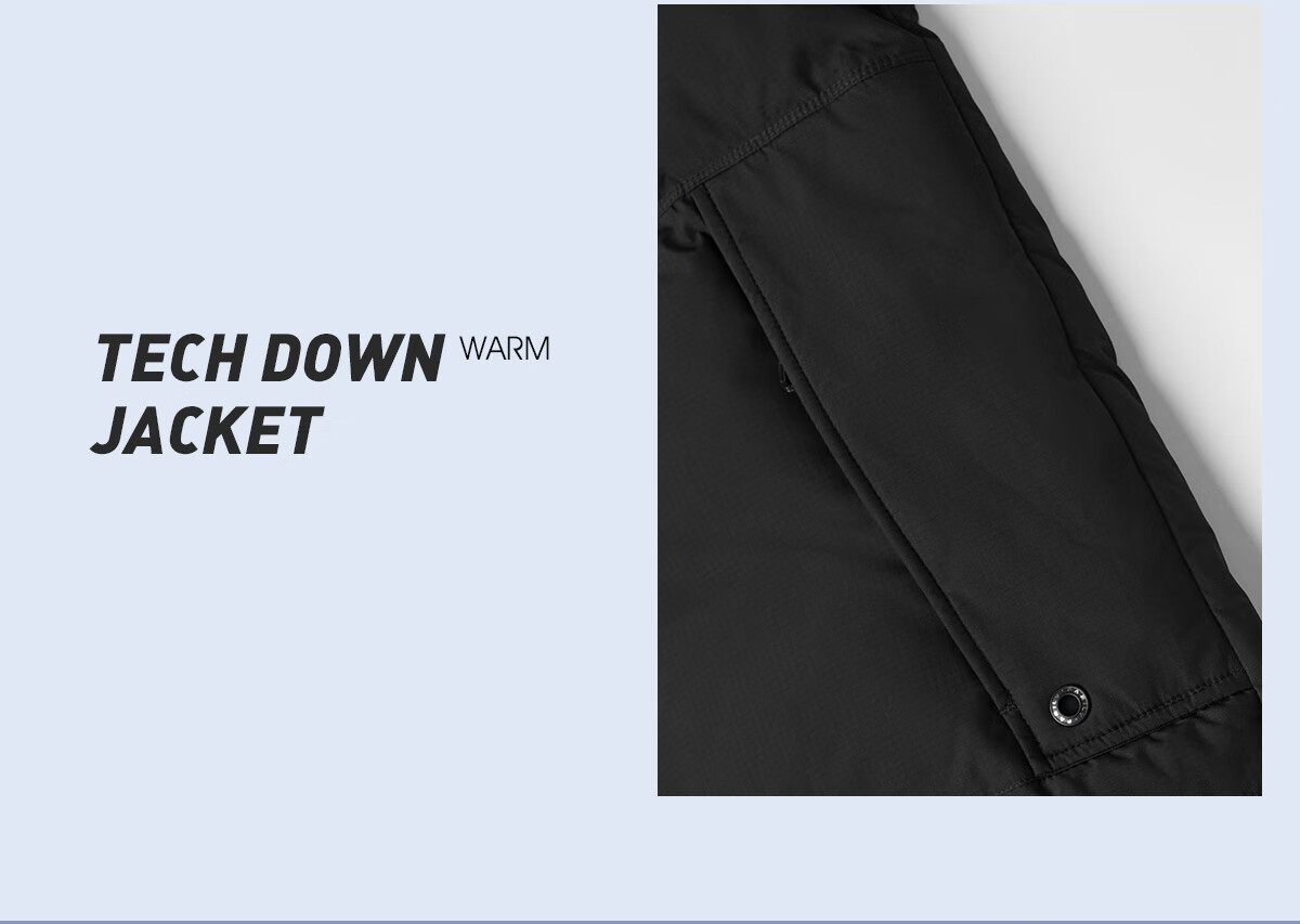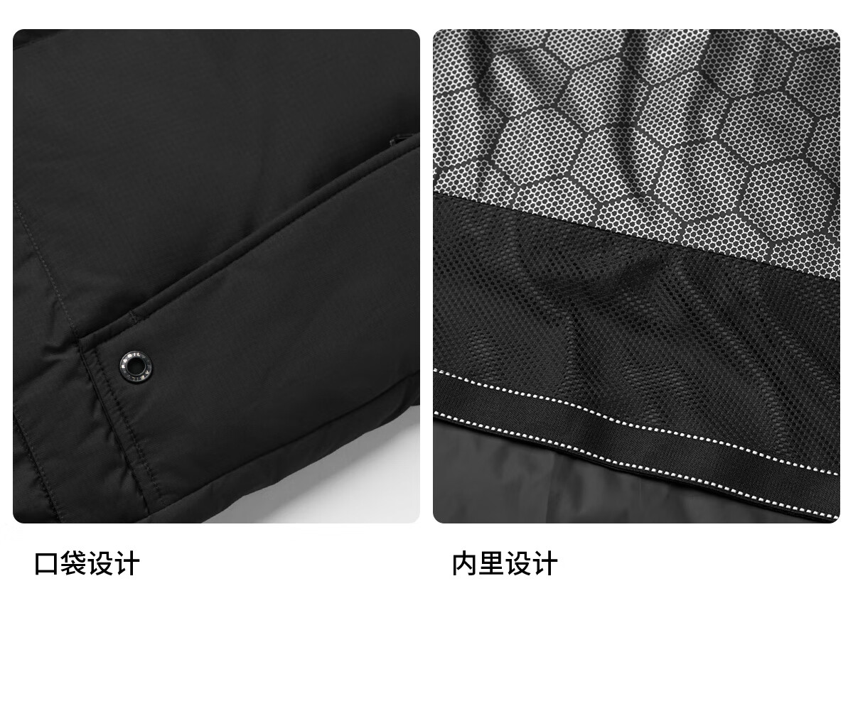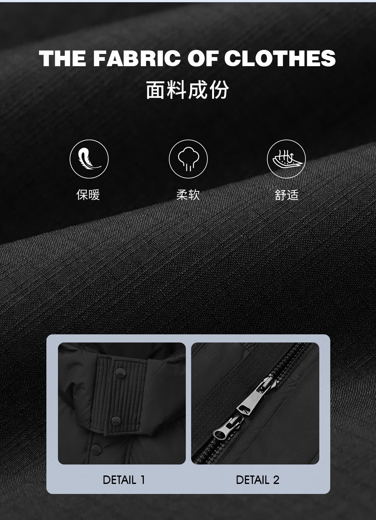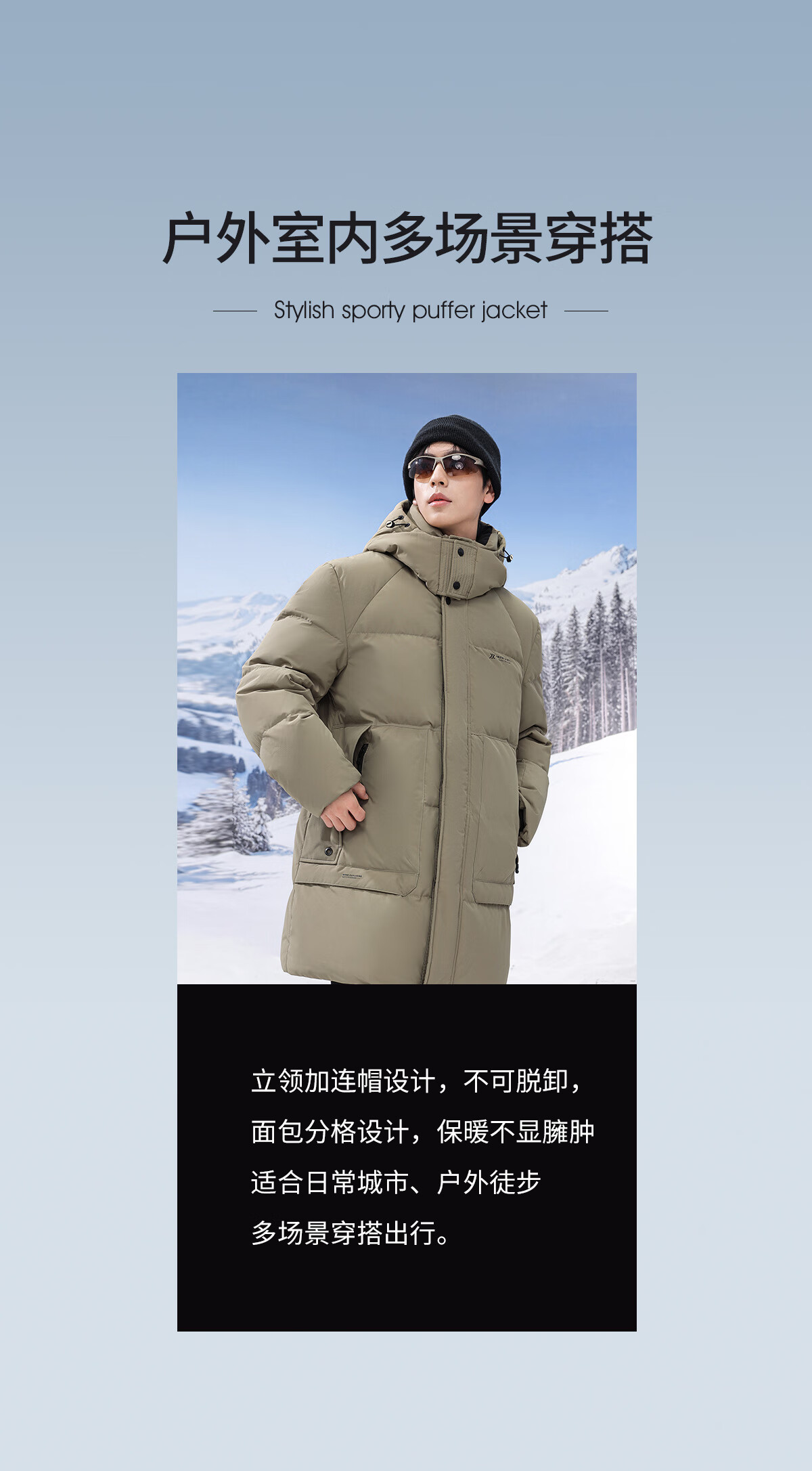 Flying in the Snow Men's Mid-Length Down Jacket 2025 New Letter Printed Hooded Fashionable Warm Jacket Gemstone Black XL