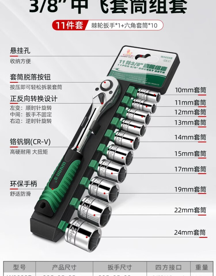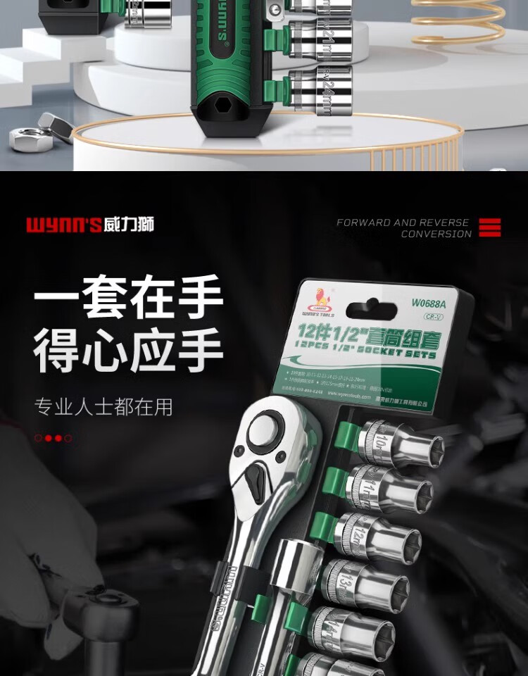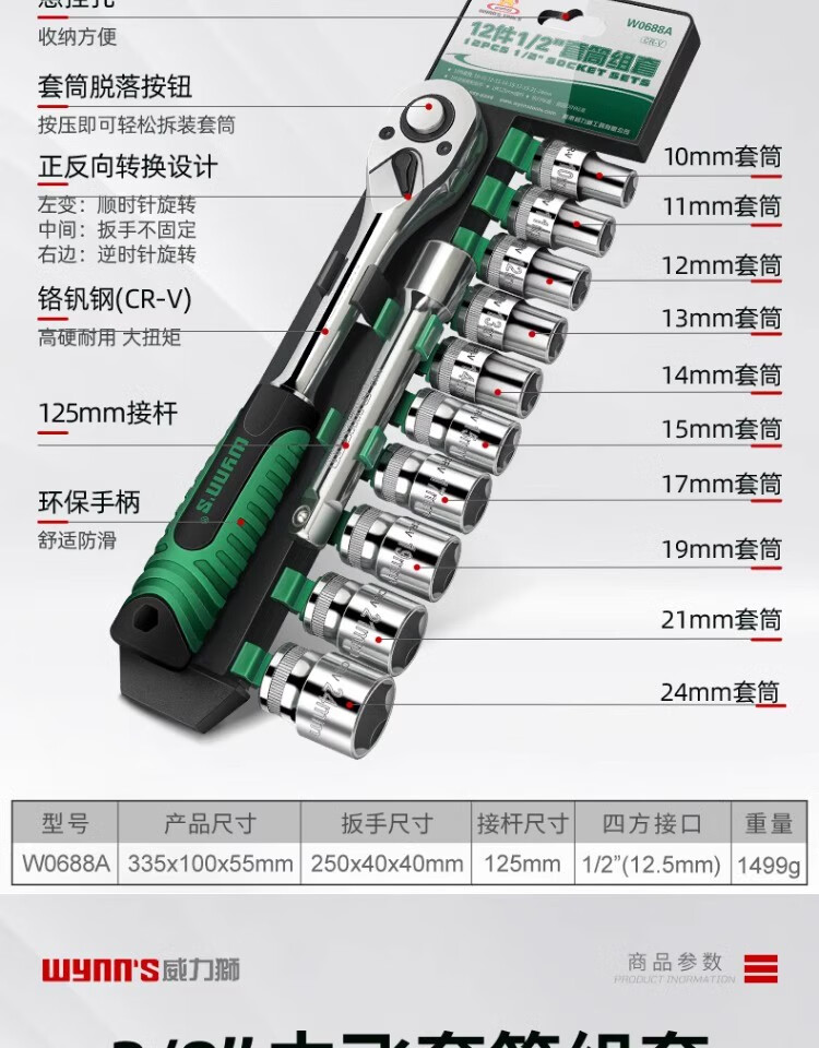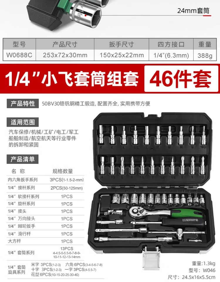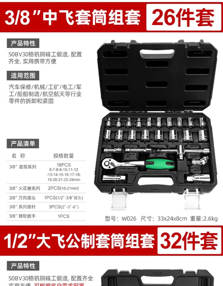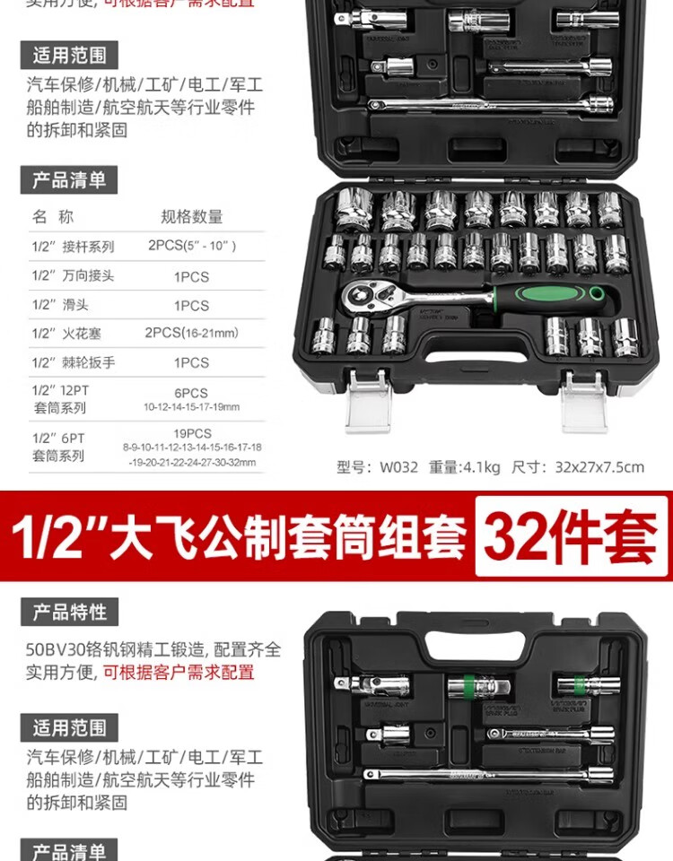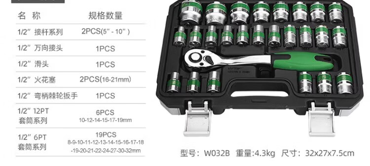 Power Lion socket wrench auto repair tool set 1/2 inch ratchet wrench household 32-piece set Dafei W032