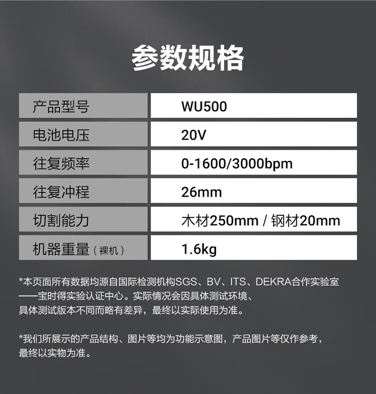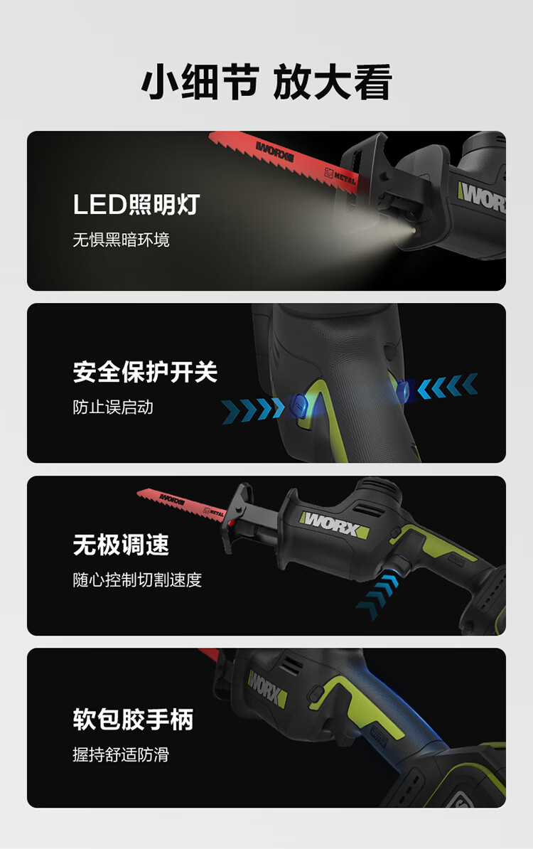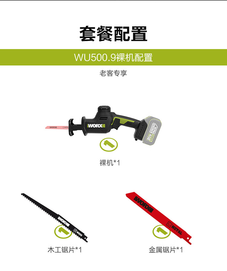 Vickers 20V brushless lithium battery reciprocating saw WU500.9 (bare metal) saber saw hand electric saw rechargeable logging saw