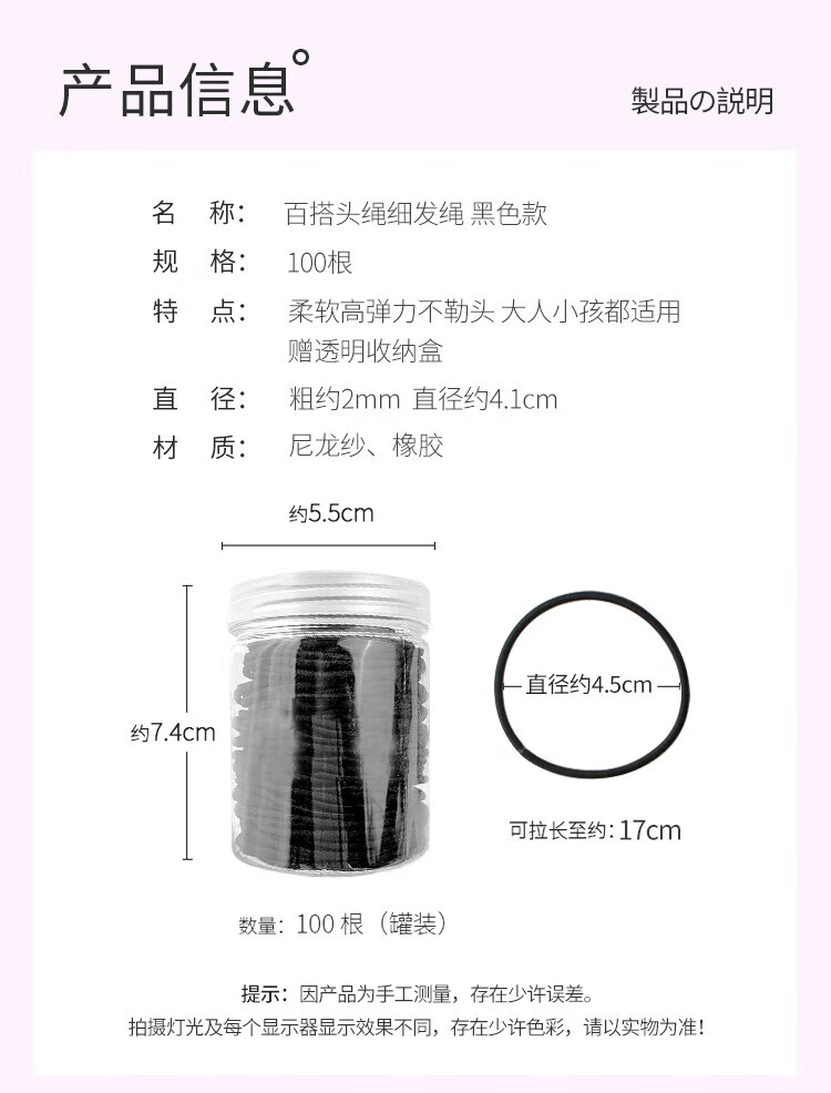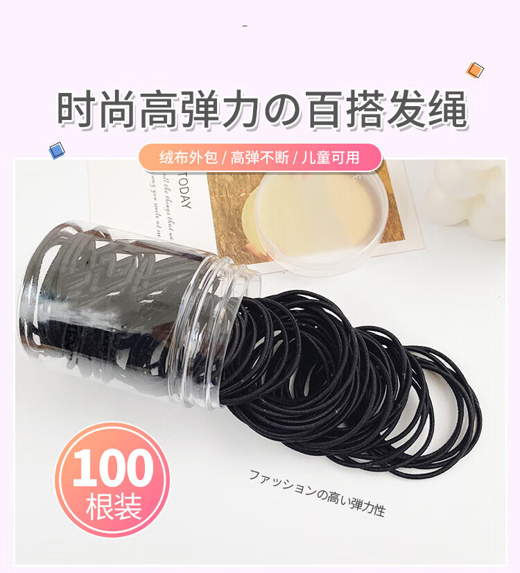 Li Qingqiu Dong black rubber band thin hair rope 100 pieces high elastic rubber band hair band leather set hair accessories