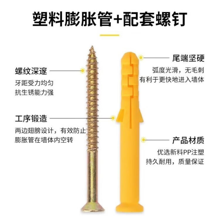 Yongli Shangxiao Yellow Fish Plastic Expansion Tube Expansion Screw Rubber Plug Bolt Expansion Plug Self-tapping Screw 8*60mm (50 sets)