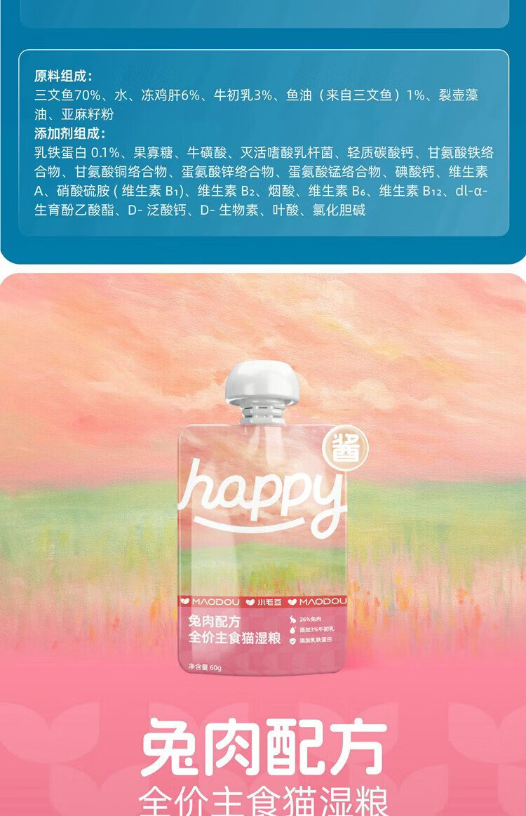 Small edamame HAPPY sauce full price staple meat sauce package cat staple food wet food staple package chicken milk flavor 60g