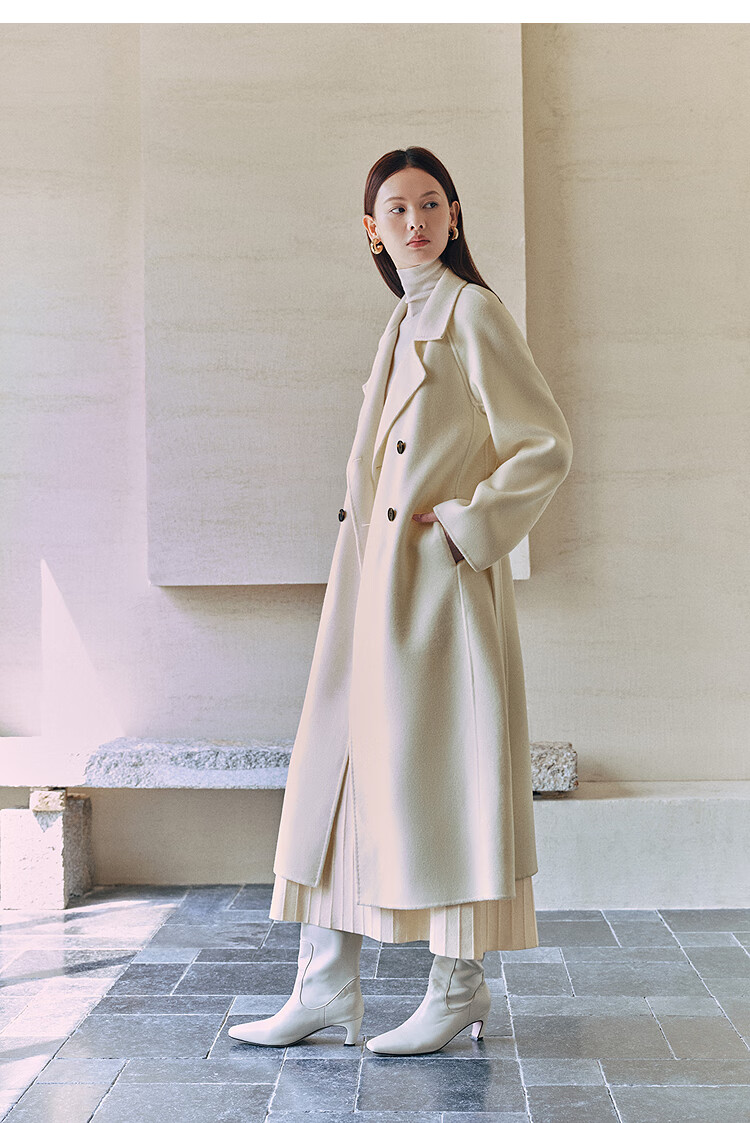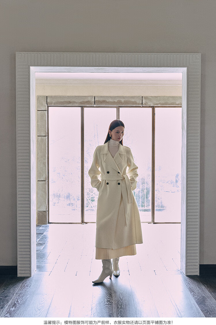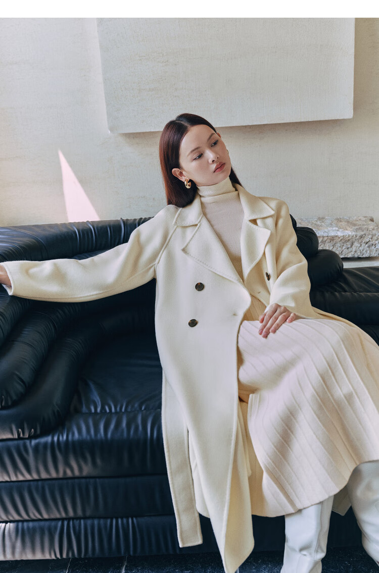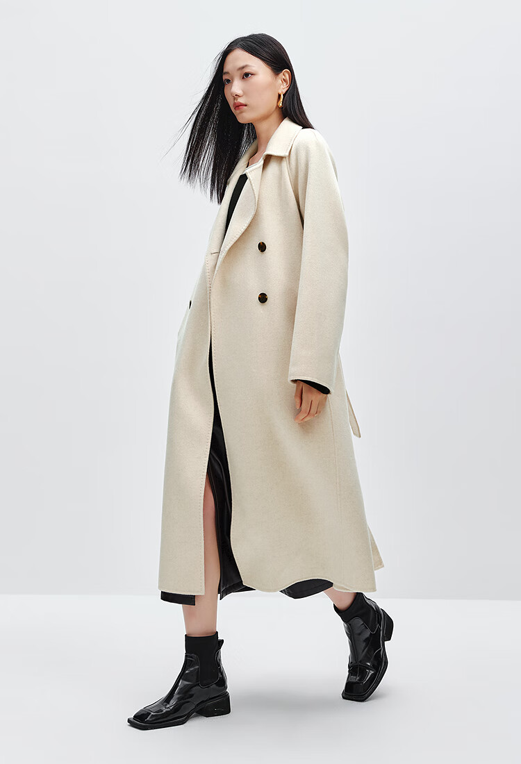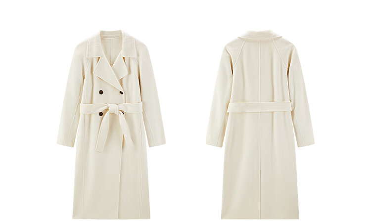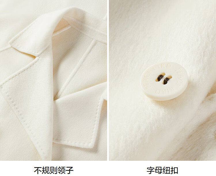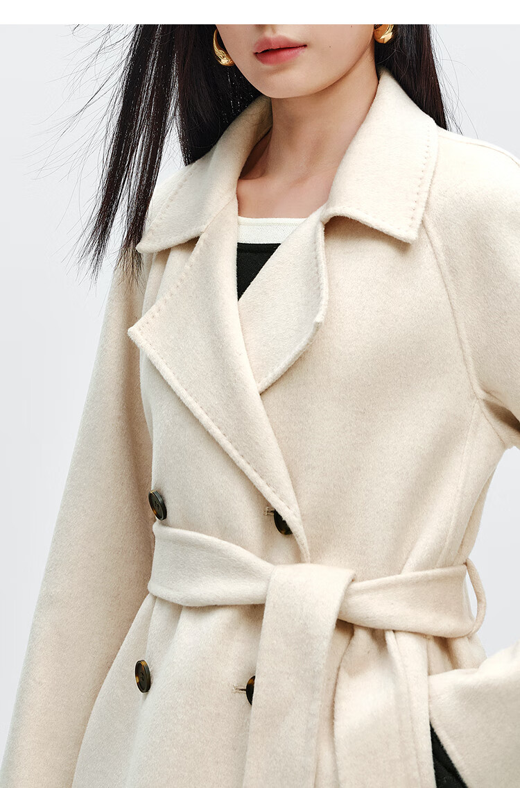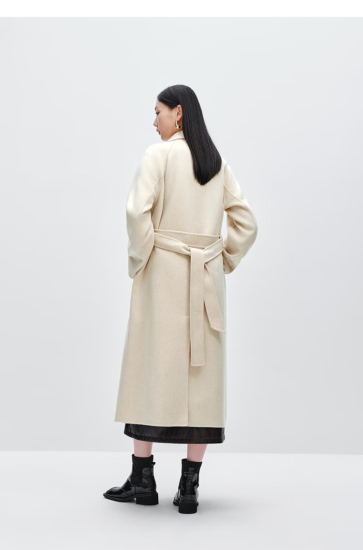 PEACEBIRD Women's Woolen Coat Master Zhen velvet series bathrobe double-sided woolen Hepburn style off-white M