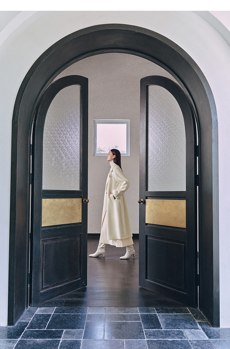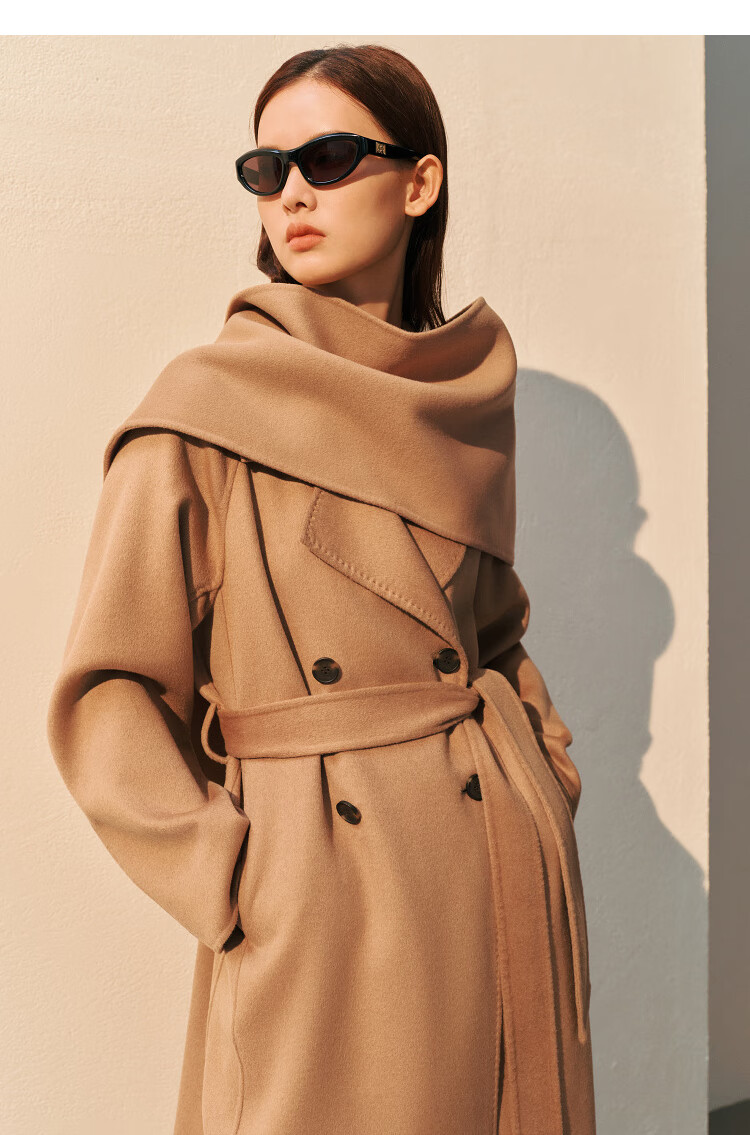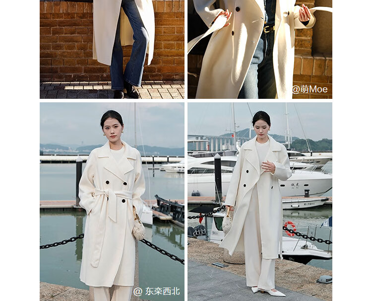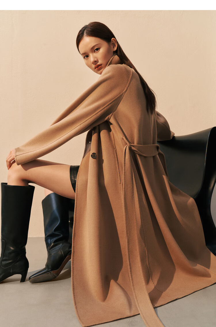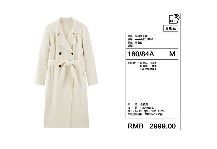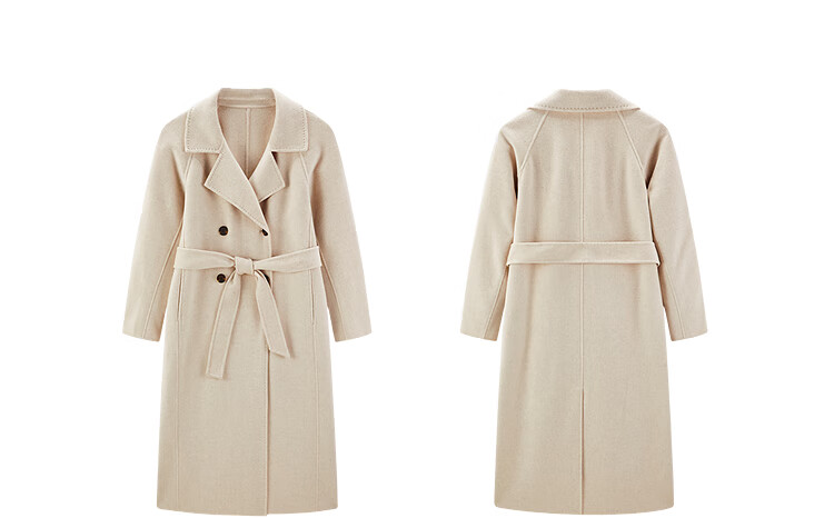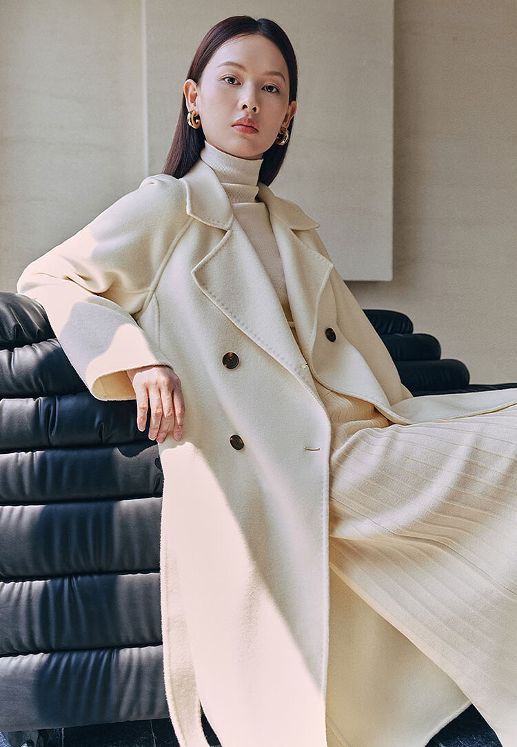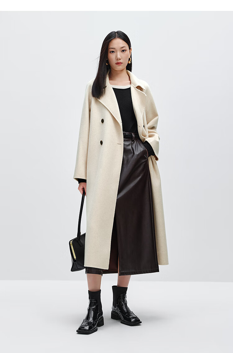 PEACEBIRD Women's Woolen Coat Master Zhen velvet series bathrobe double-sided woolen Hepburn style off-white M