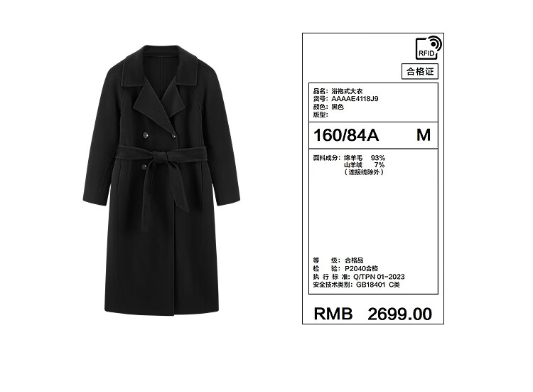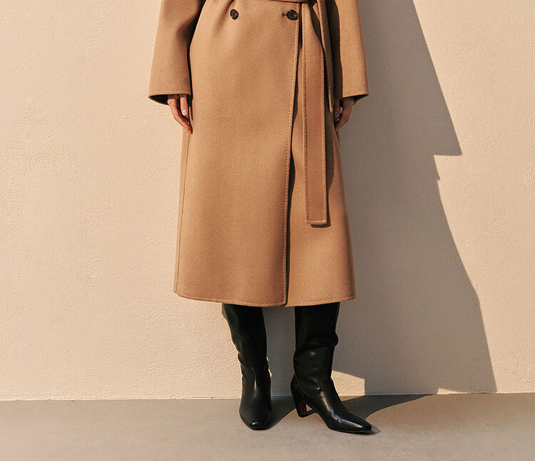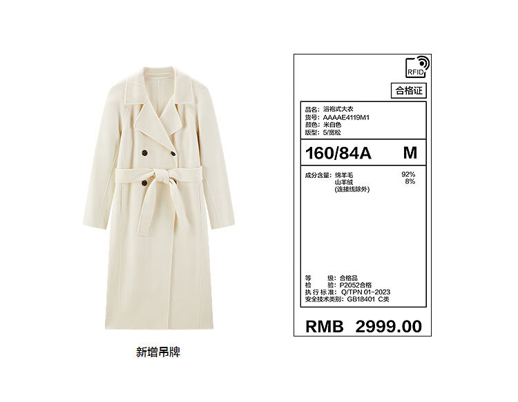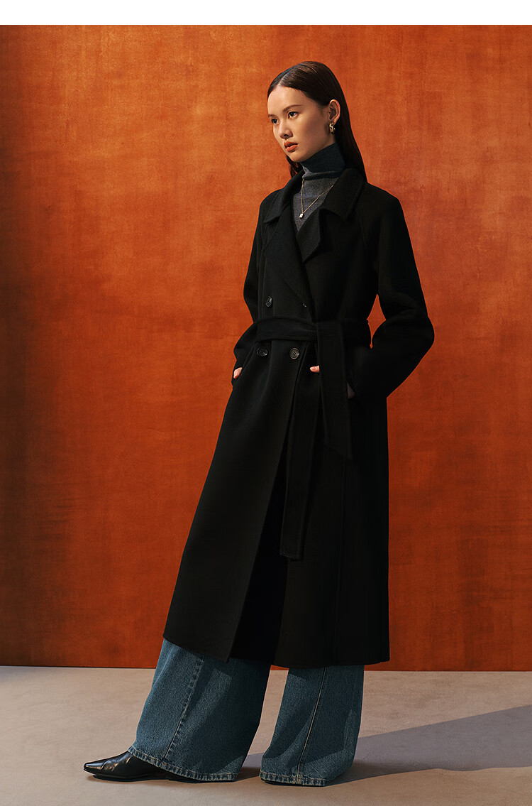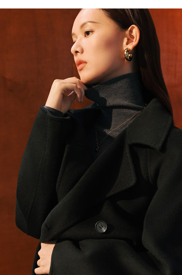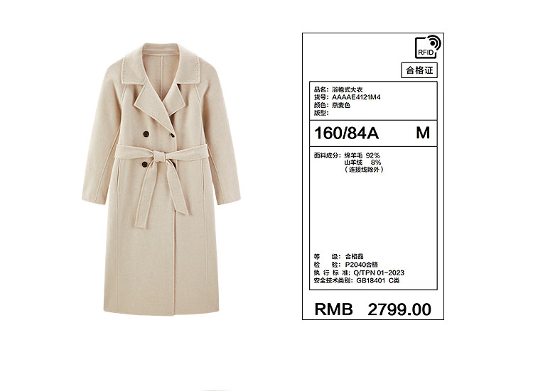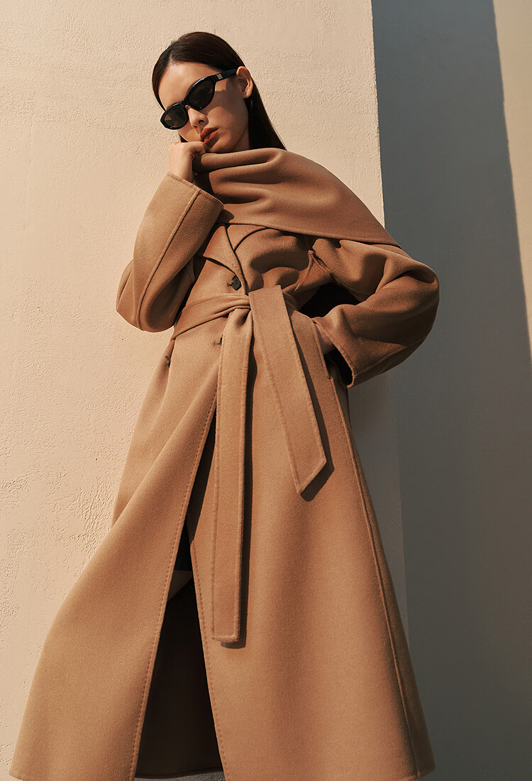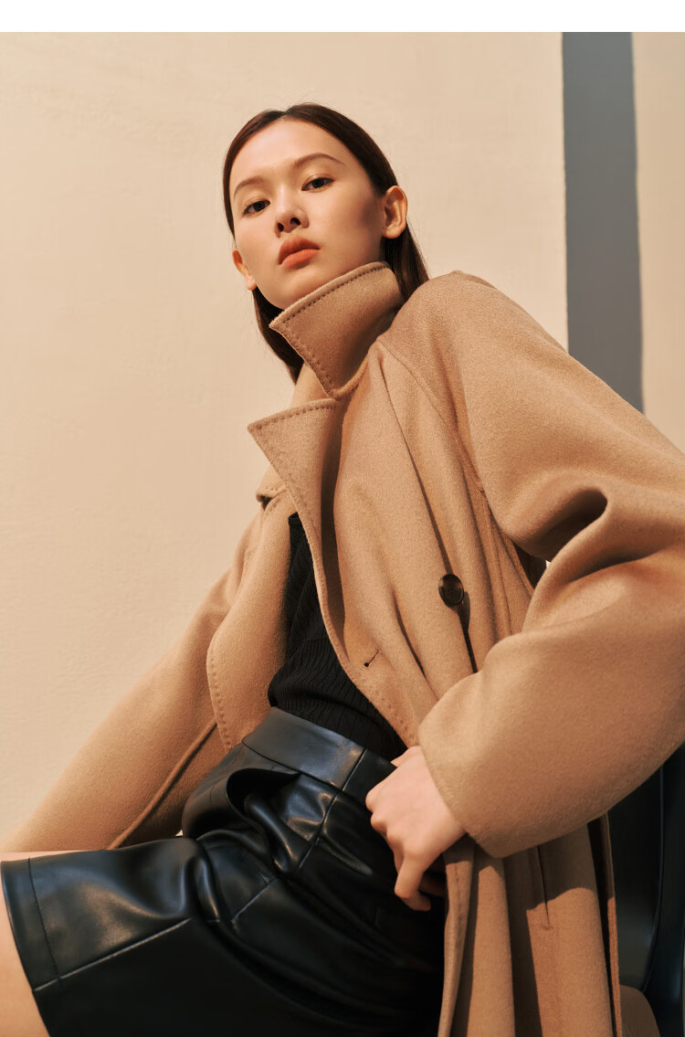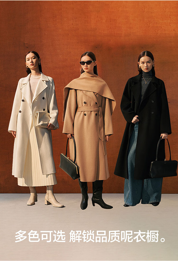 PEACEBIRD Women's Woolen Coat Master Zhen velvet series bathrobe double-sided woolen Hepburn style off-white M