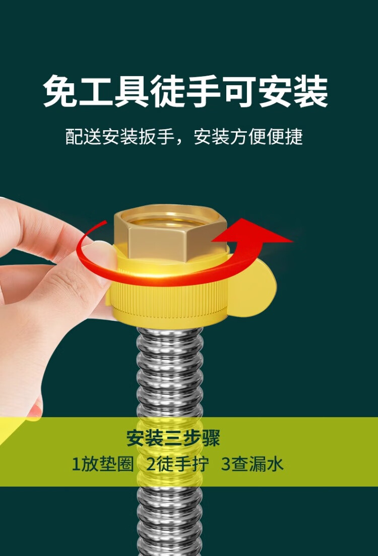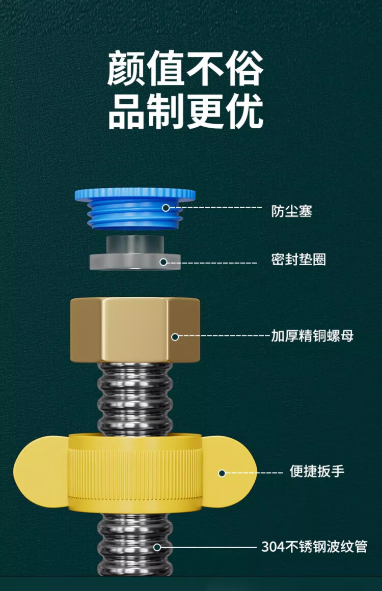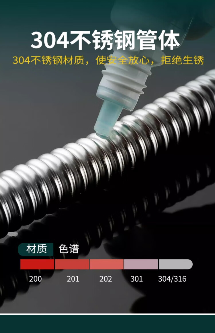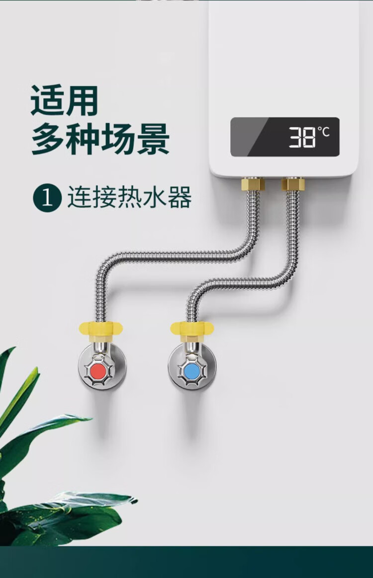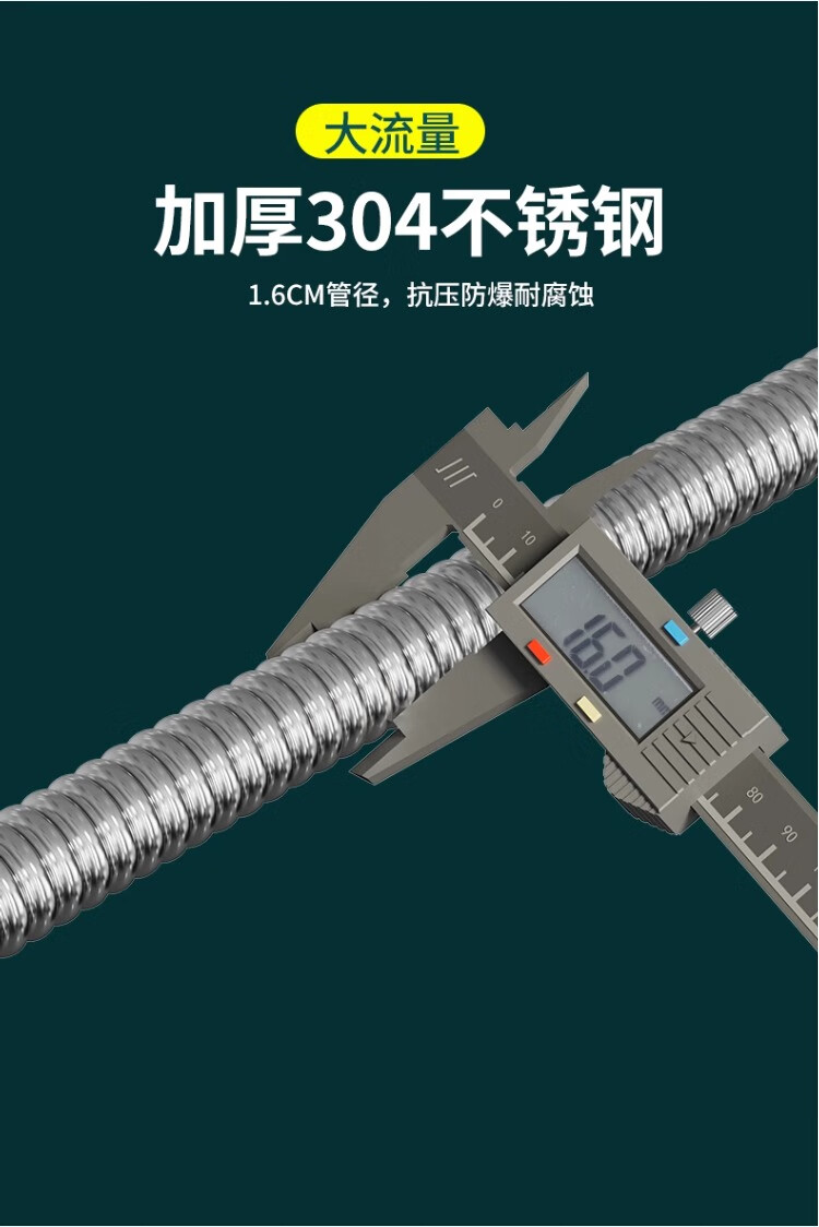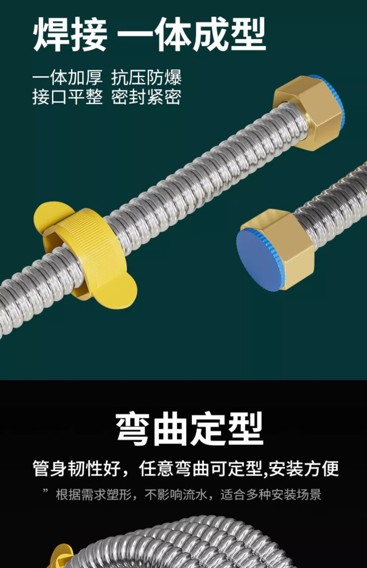 Qiansulun 304 stainless steel corrugated pipe 4-point metal hose gas water heater inlet pipe hot and cold high-pressure connecting pipe 10CM pipe with fine copper nut