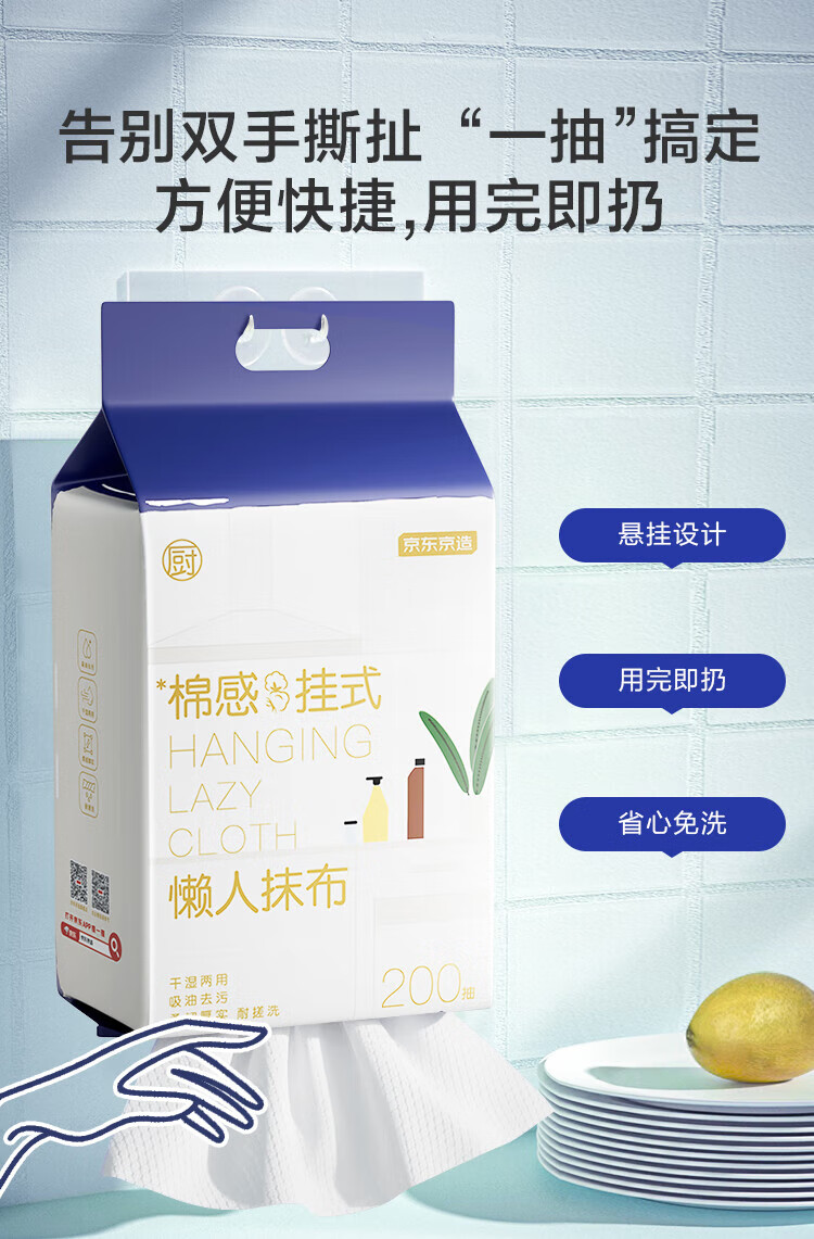 Disposable lazy rags made in Jingdong, 200 pieces*2 pieces, removable kitchen paper towels, hanging dishcloths, dish towels