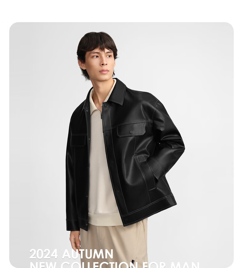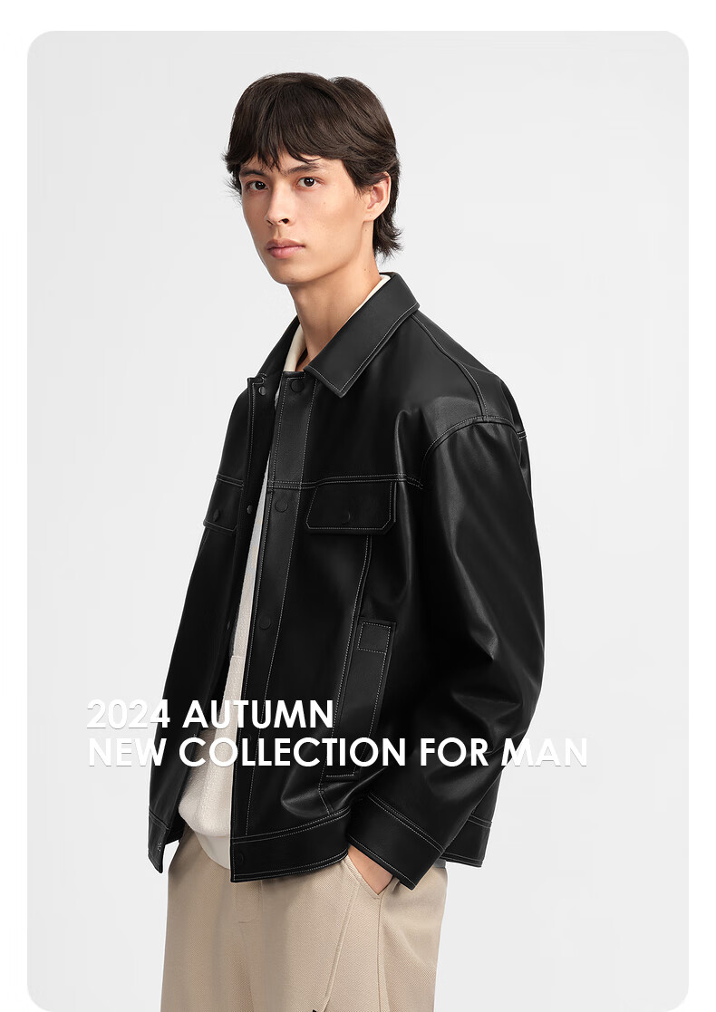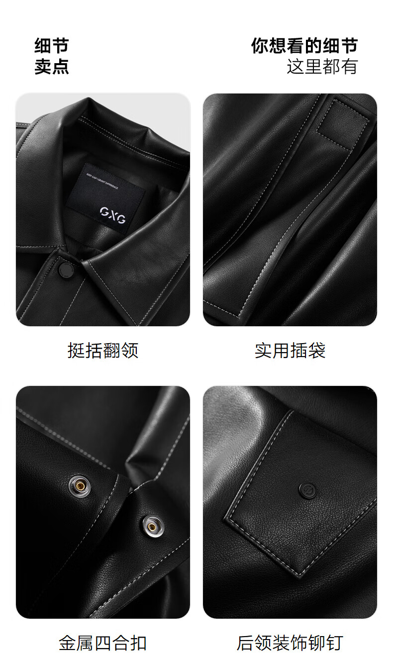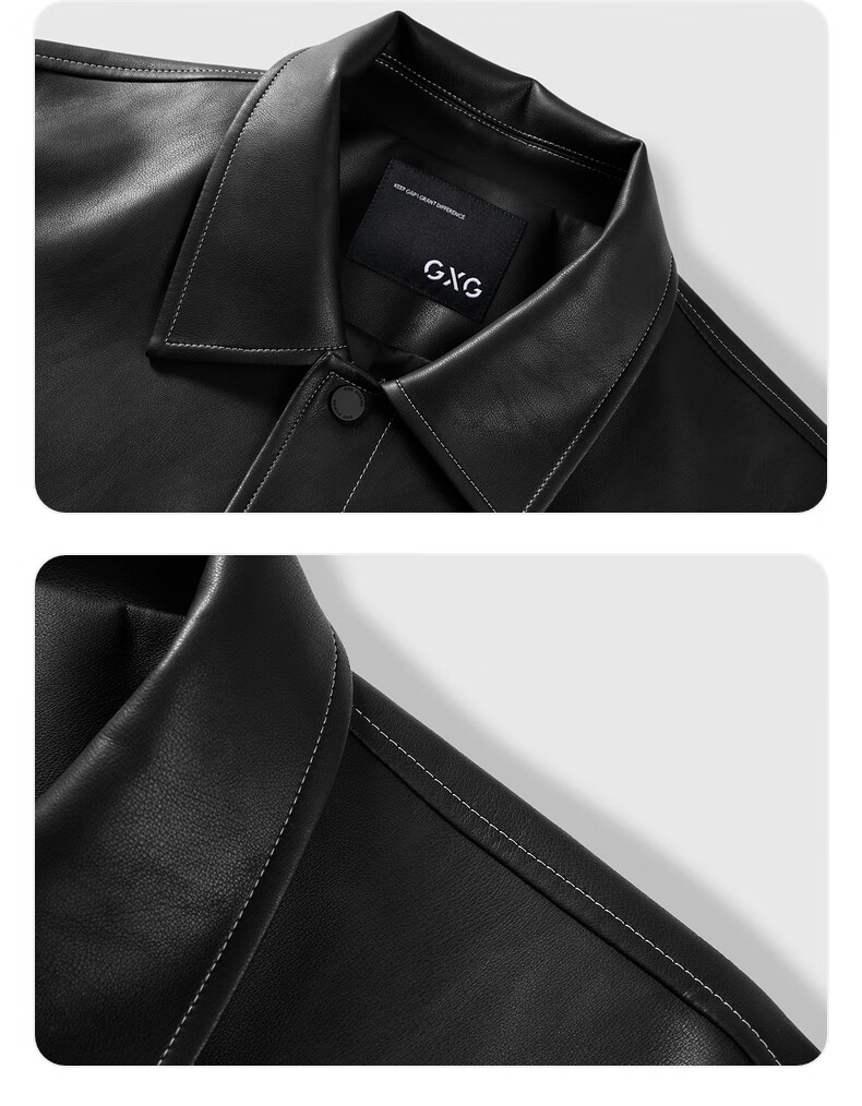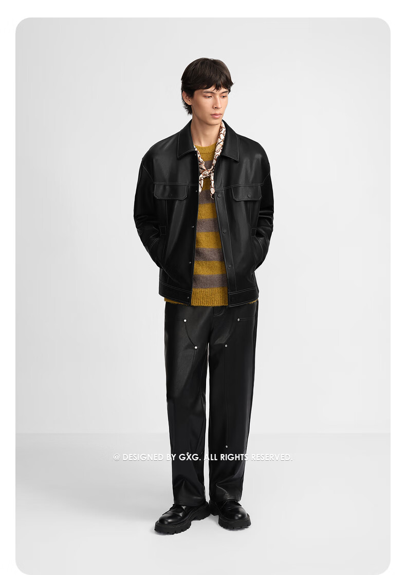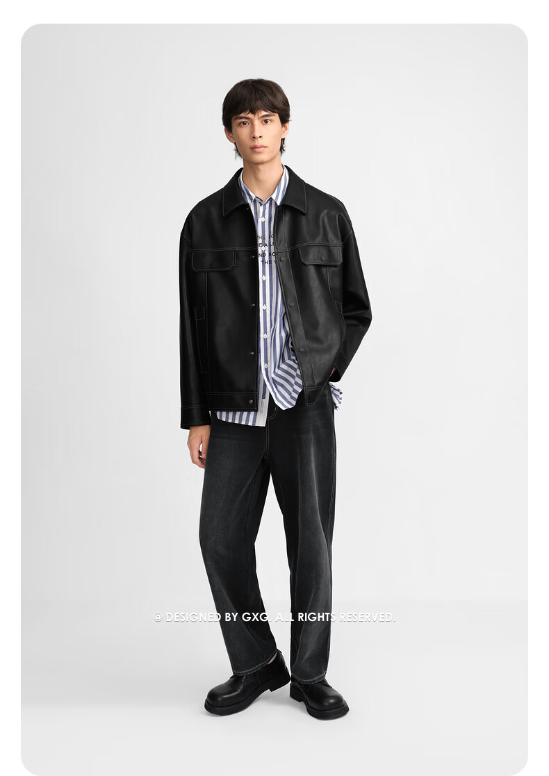GXG men's simple topstitch design pu leather jacket for men black 175/L