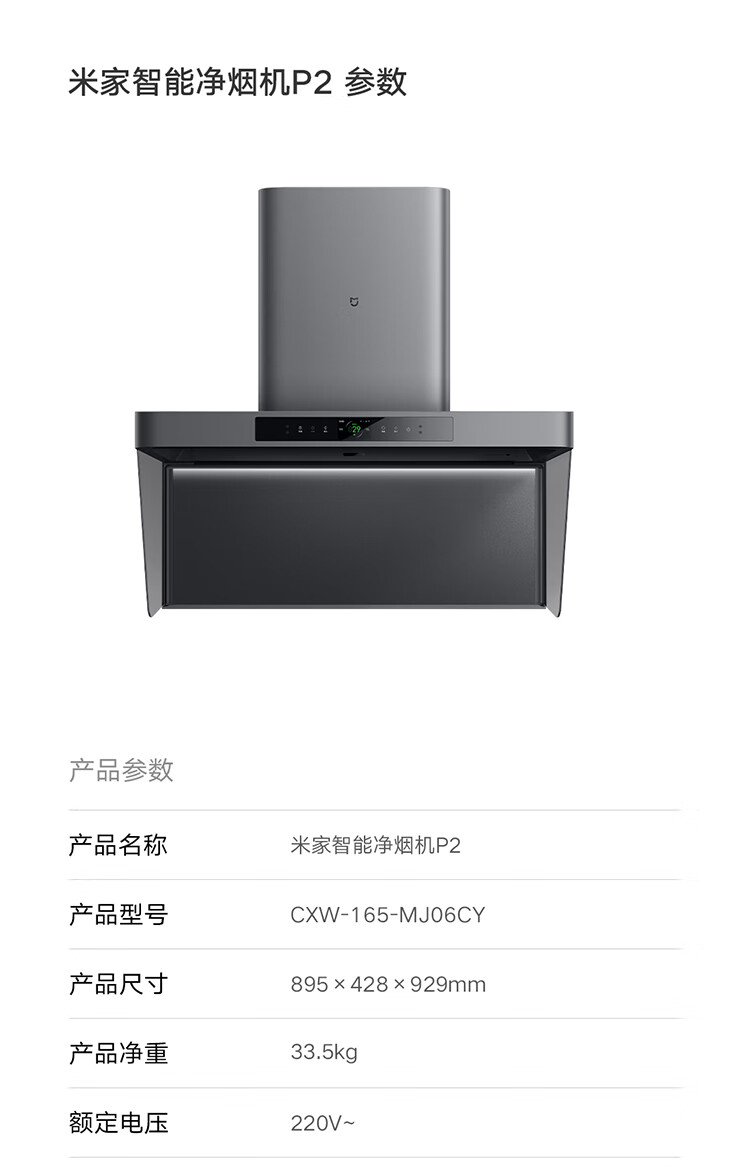 Mijia Xiaomi range hood hood purifier P2 trade-in large suction first-level energy efficiency door-to-door installation natural gas timing set no need to disassemble and wash MJ06CY