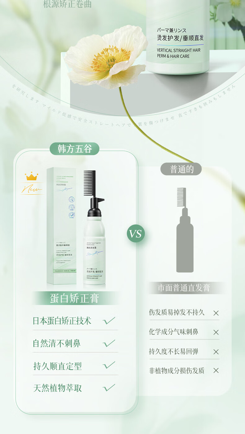 Korean herbal gluten correction hair straightening cream, no-stretch household bangs hair styling, smooth straightening softener, perm potion for men and women