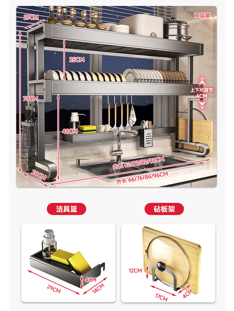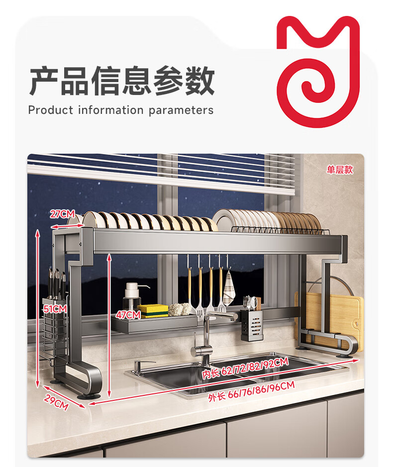 Kitchen Story kitchen rack, sink drain rack, countertop dishwashing rack, sink chopstick barrel storage rack, complete collection of utensils