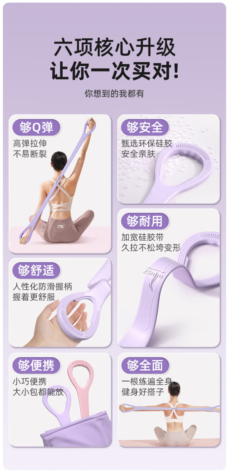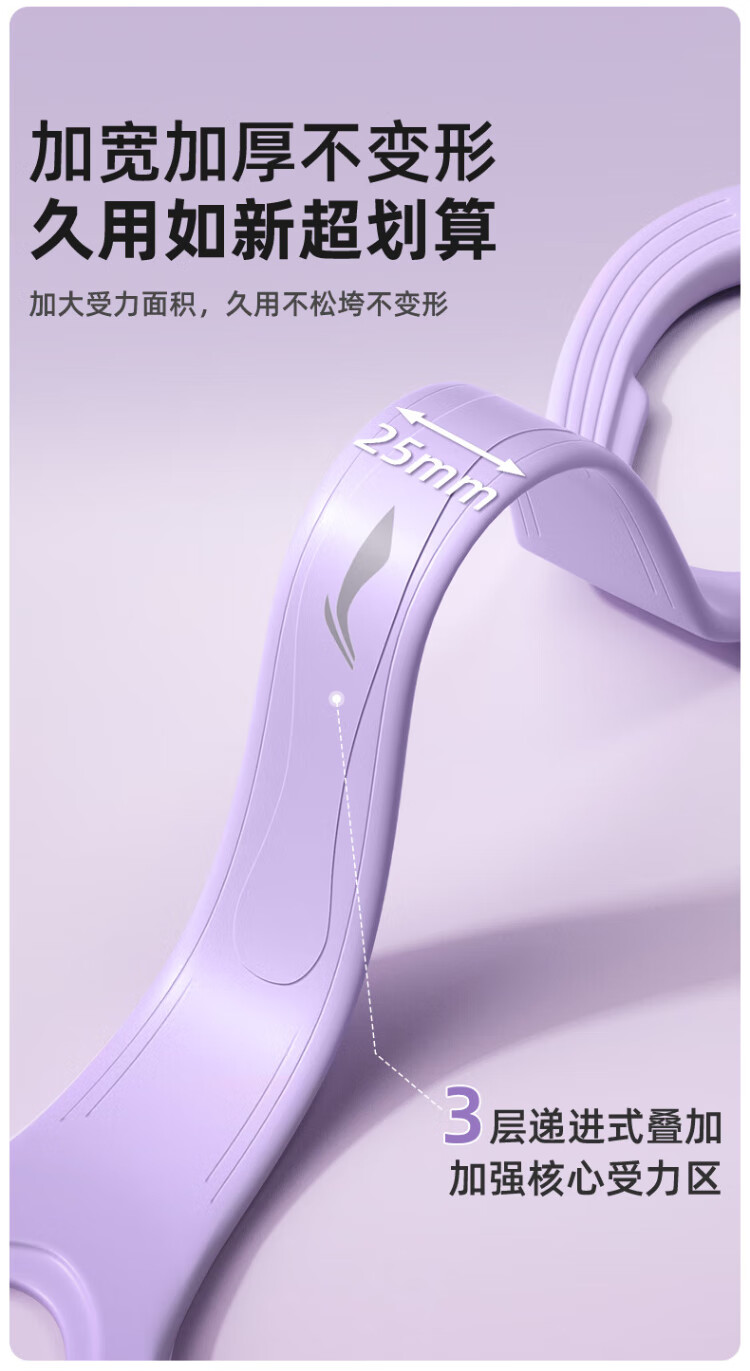 Li Ning 8-figure tensioner elastic band tension rope eight-figure stretch circle open back shoulder female back fitness equipment 15kg purple