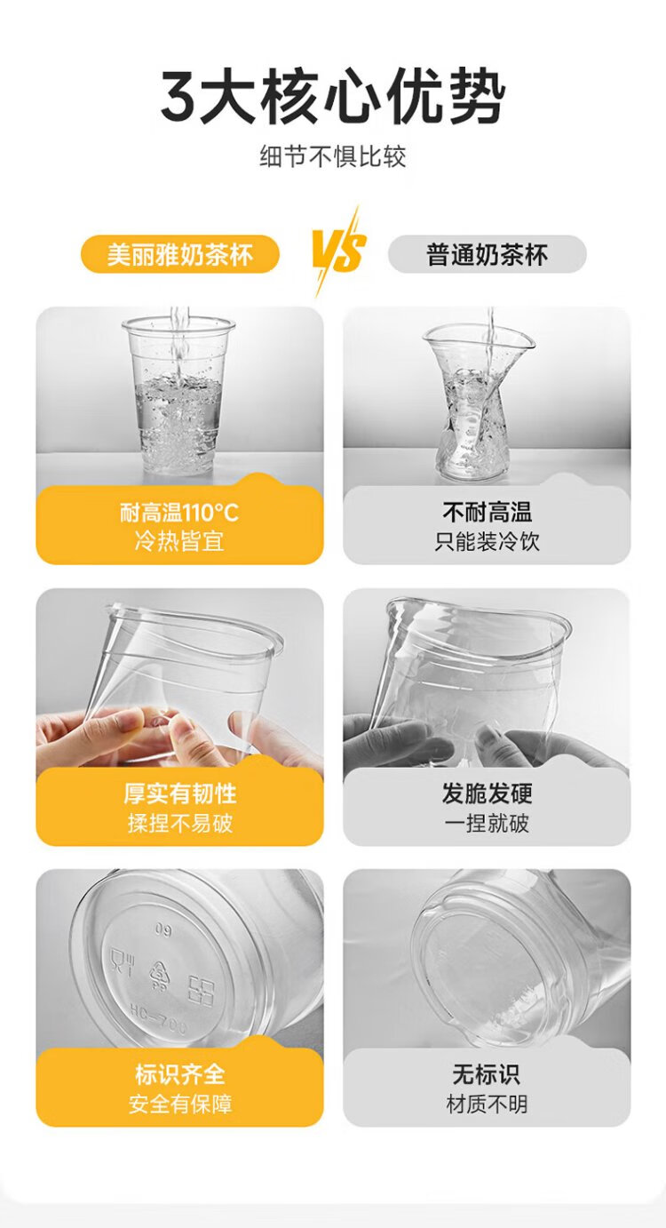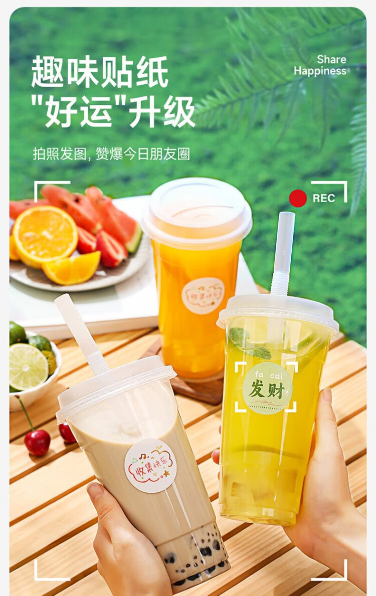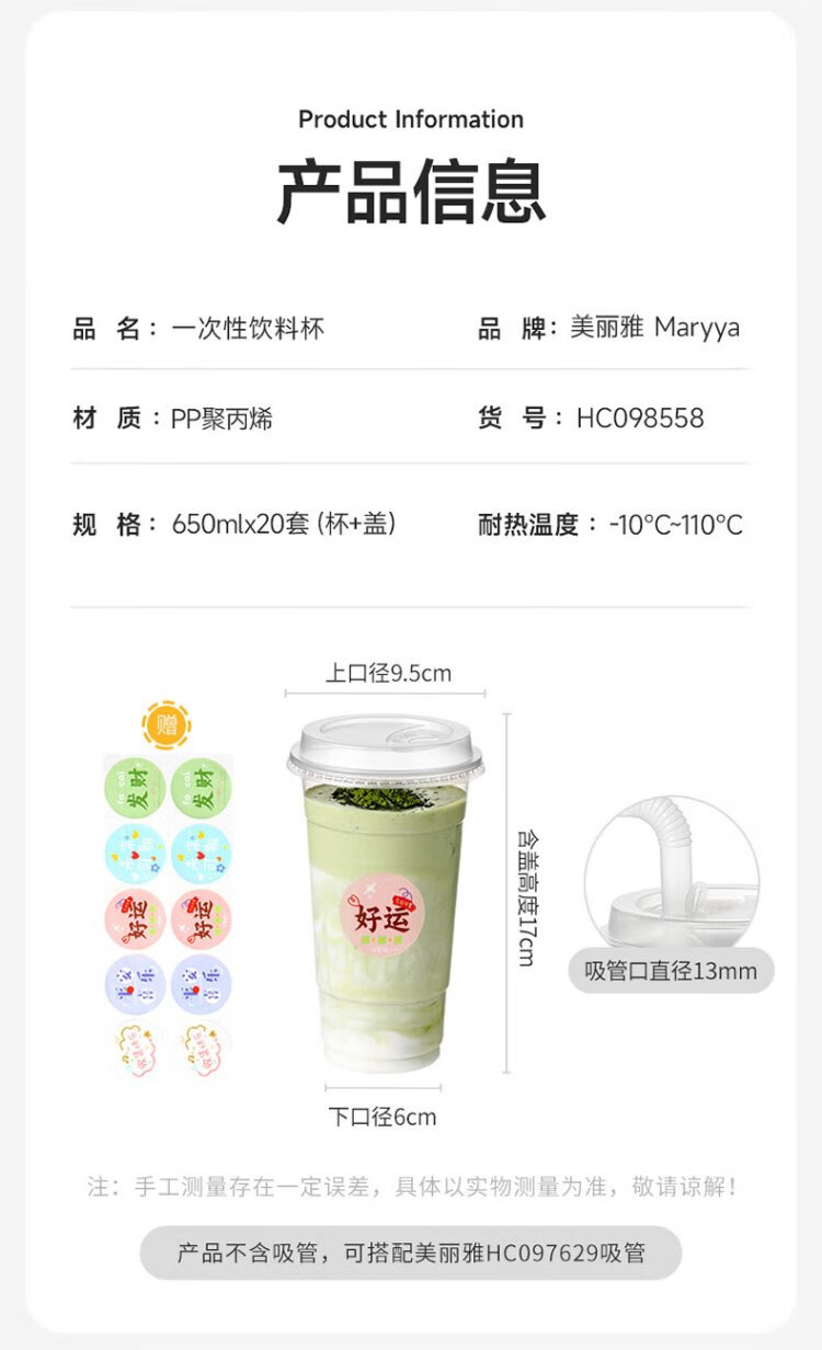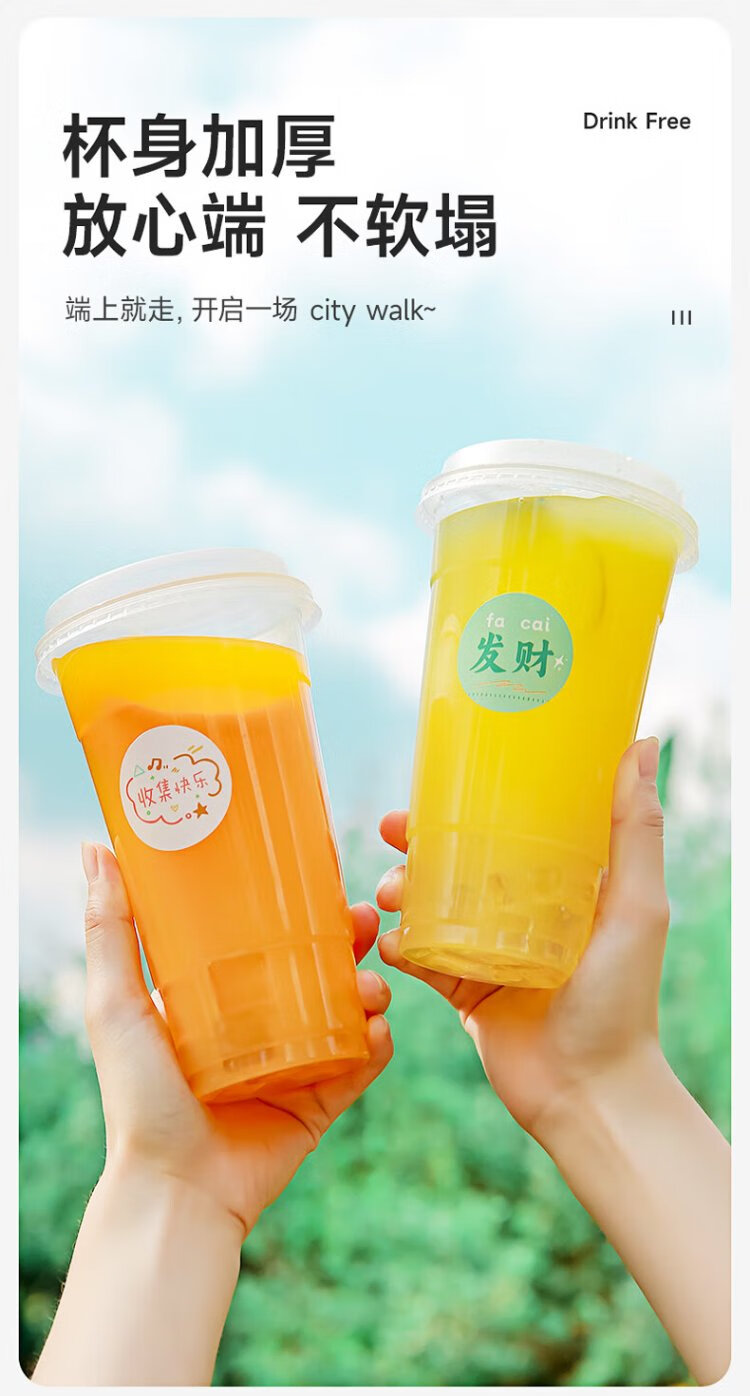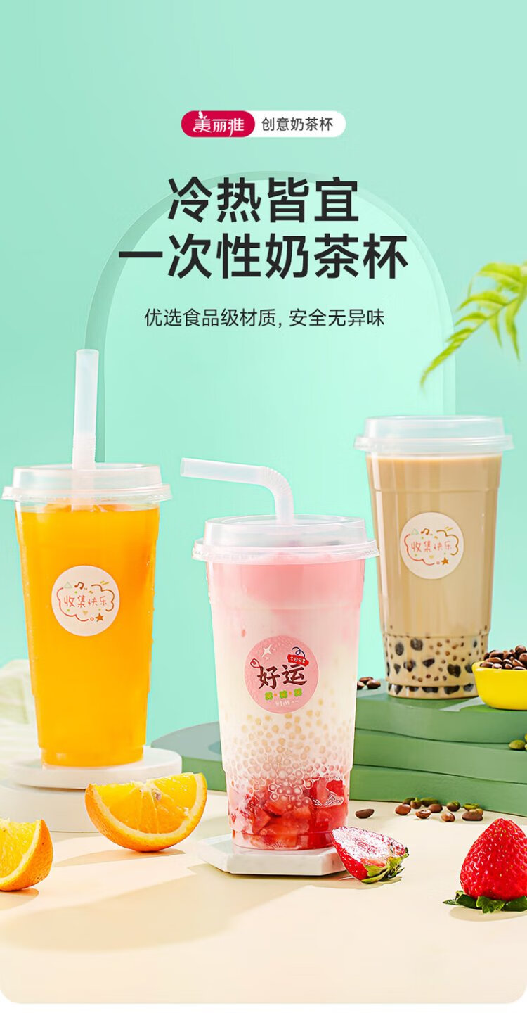 Meiya milk tea cup disposable beverage cup 650ml*20 set plastic coffee cup with lid milk tea cold drink juice cup