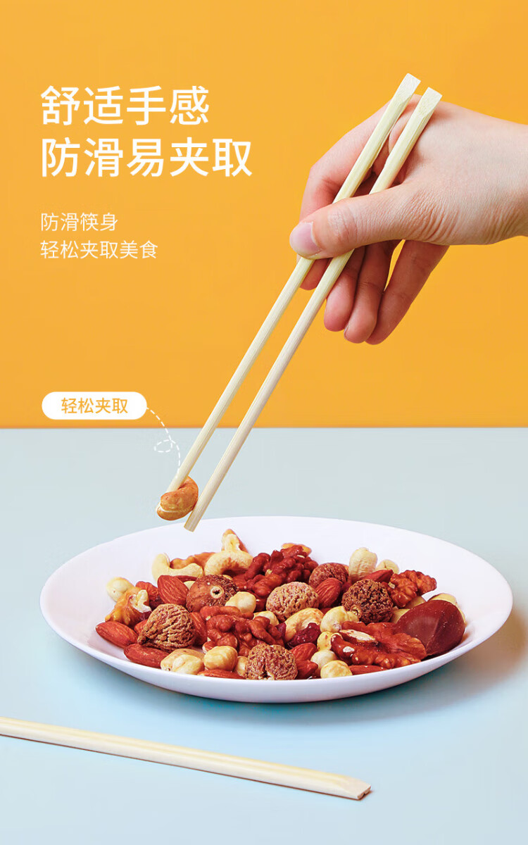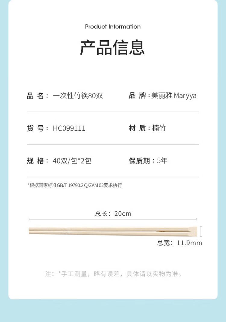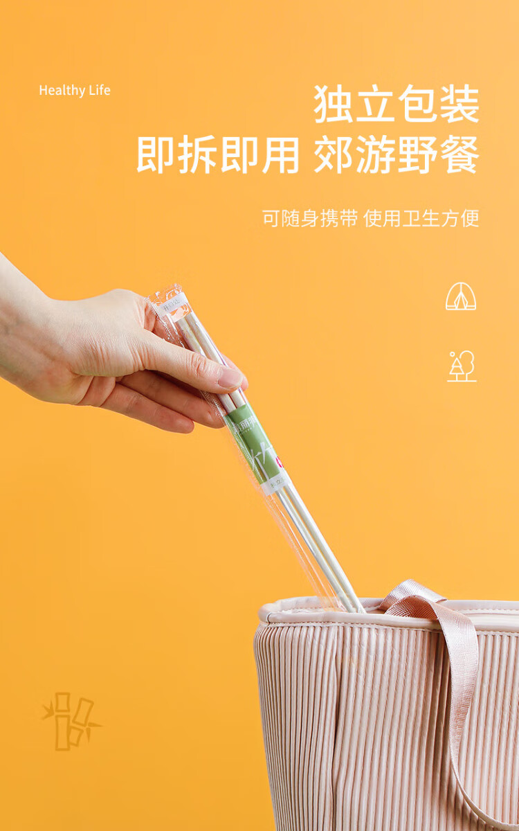 Meiya disposable chopsticks 80 pairs, individually packaged bamboo chopsticks, home takeout packaging tableware, picnic and camping convenience