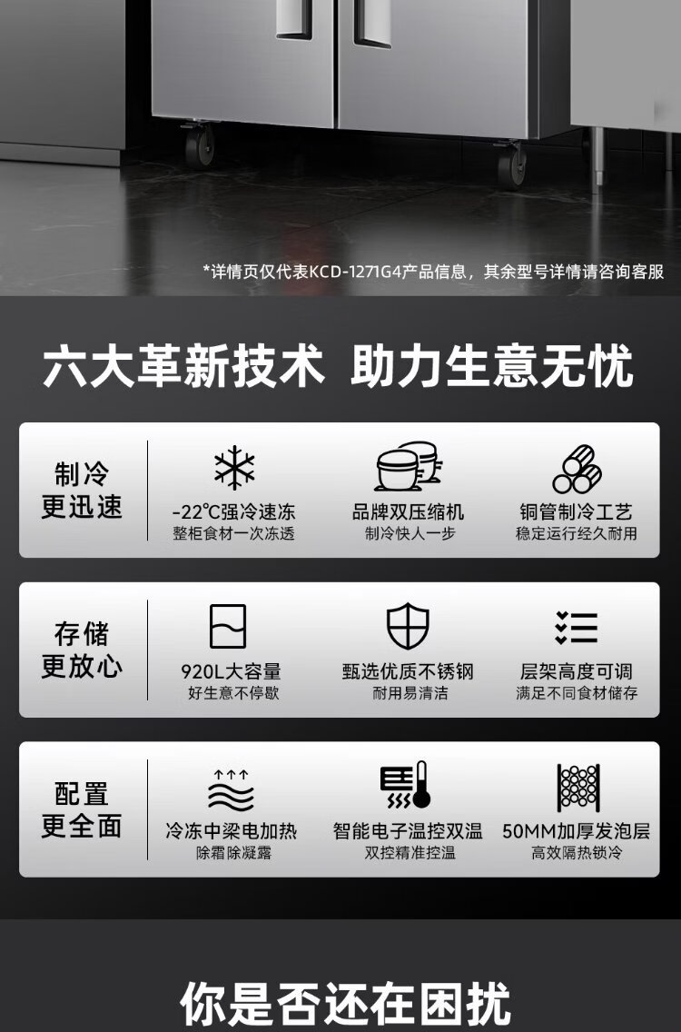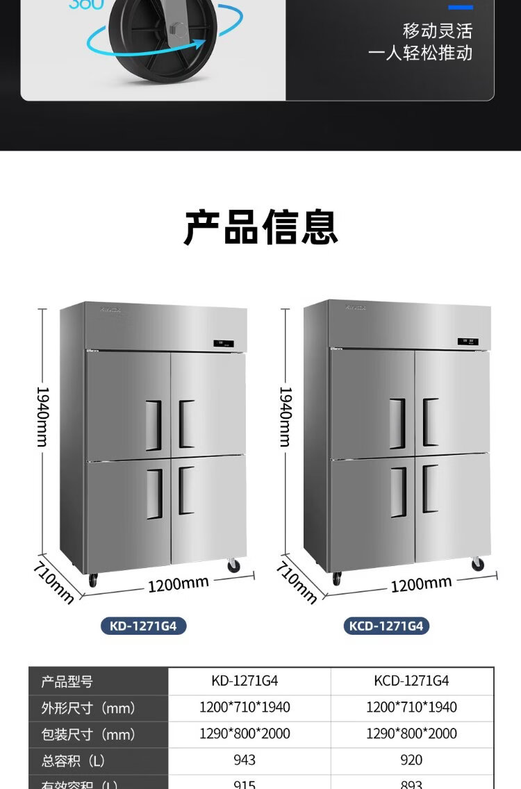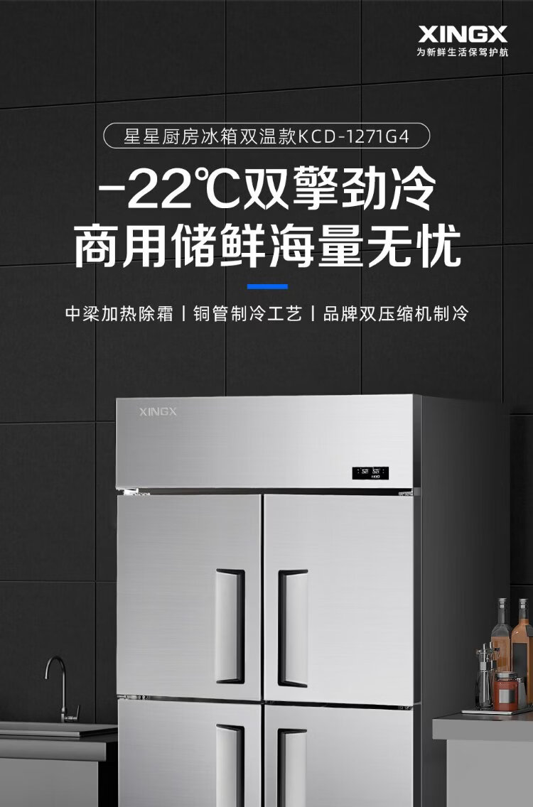 Star four-door refrigerator commercial dual-temperature refrigeration and freezing four-door large-capacity kitchen refrigerator hotel hotel fresh cabinet vertical freezer KCD-1271G4