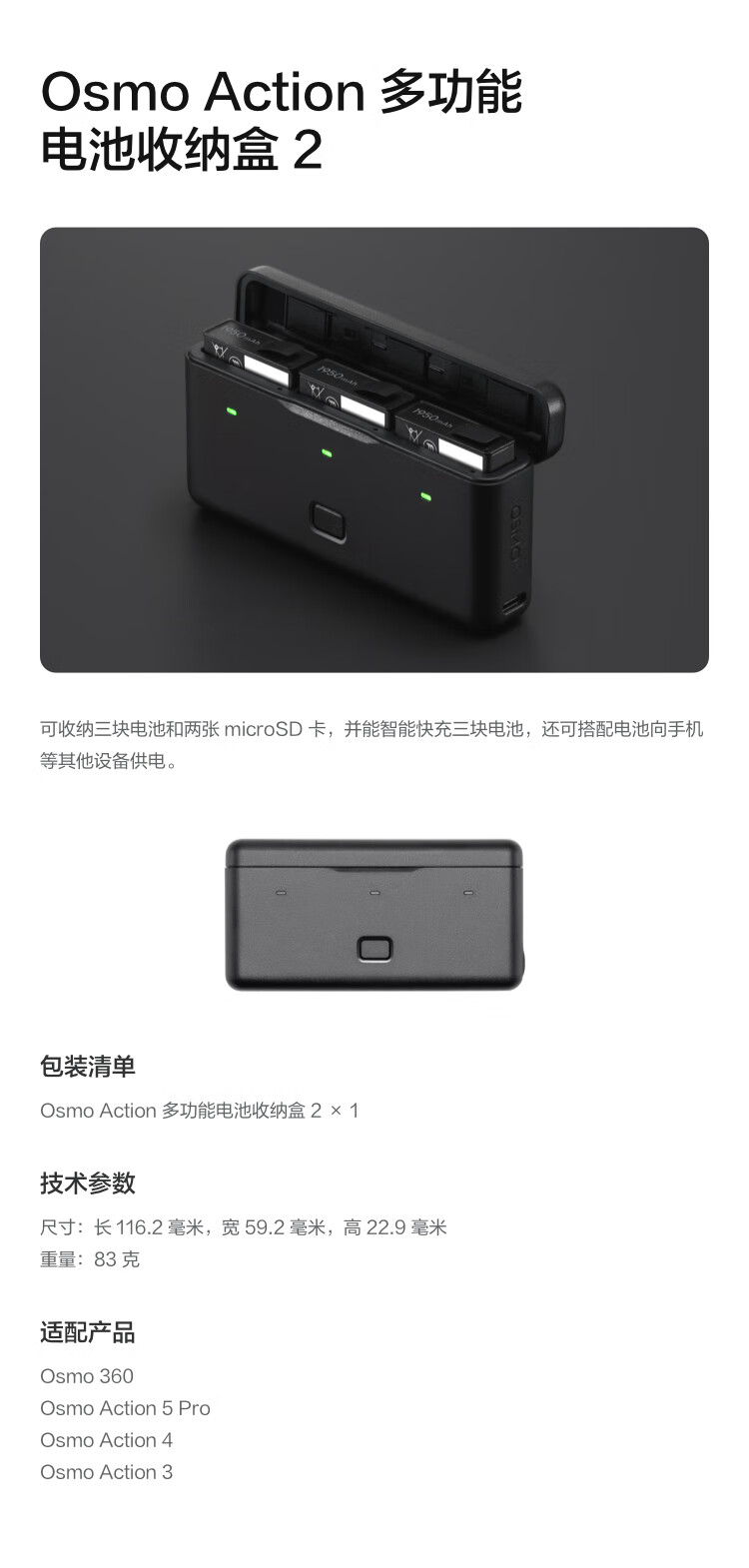DJI Osmo Action Multi-function Battery Storage Box 2 Osmo 360/Osmo Action 5 Pro/Osmo Action 4/Action 3 Accessories