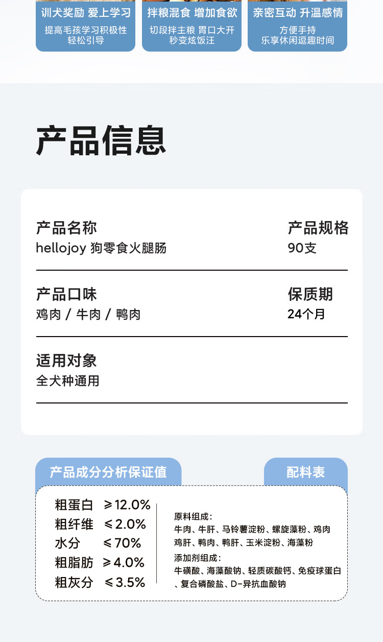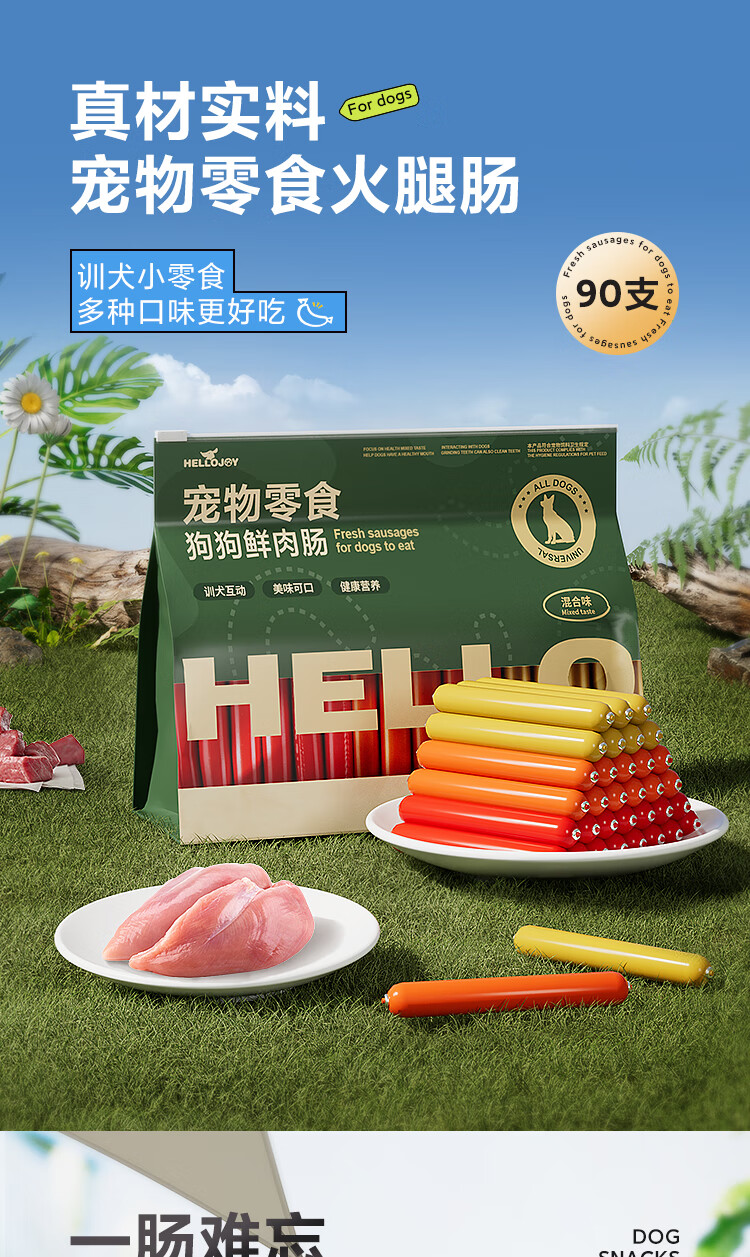 HELLOJOY dog snacks ham sausage 2.7 pounds puppy adult dog training reward mixed sausage 90 pieces 1350g