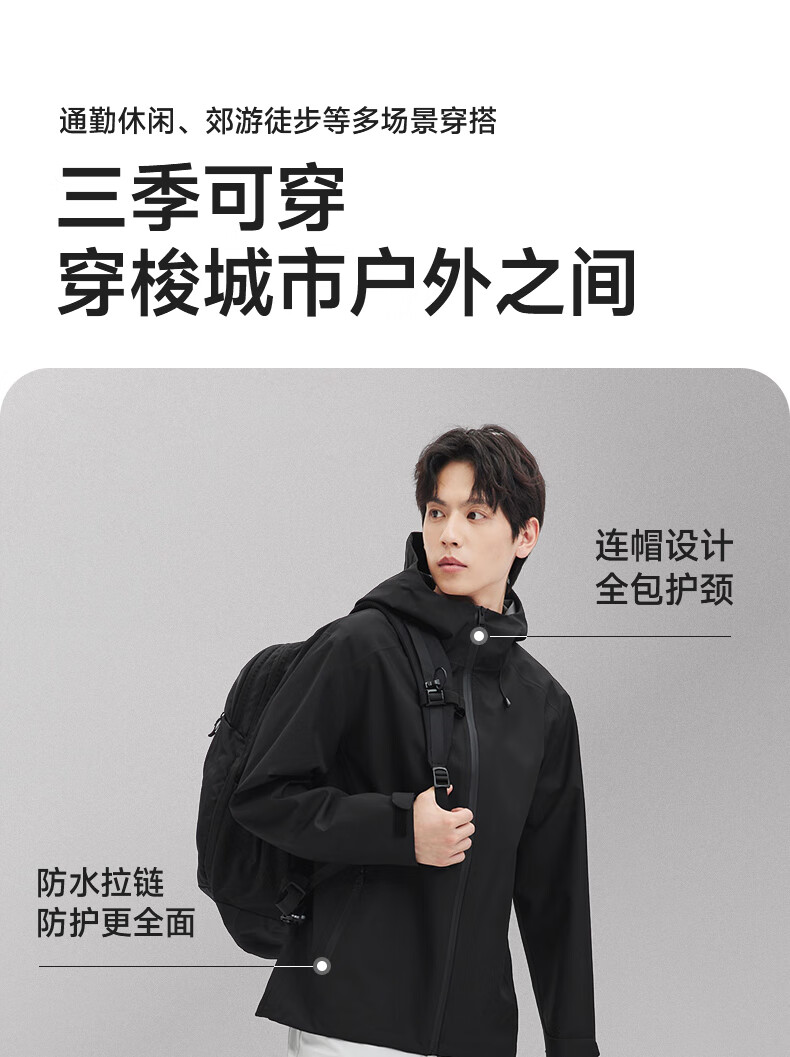 Septwolves Jacket Men's Jacket Three-Proof Technology Soft Shell Hooded Jacket Outdoor Sports Commuting Versatile and Comfortable Men's Clothing