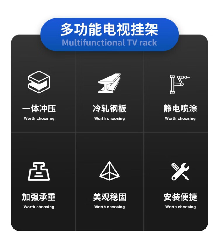 Yizhigu TV hanger wall punched pitch adjustable 40-75 inches universal for Xiaomi Hisense Skyworth Sony Huawei Changhong TCL Huawei smart screen TV bracket reinforcement