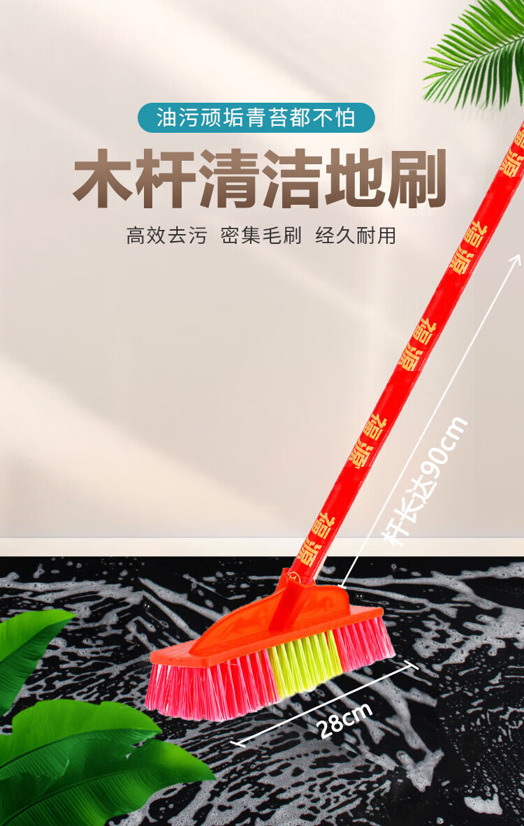 Elandon wooden pole floor brush 28CM plastic stiff bristle floor brush toilet bathroom cleaning cement floor brush floor wall tile floor brush workshop industrial factory property community lobby suitable
