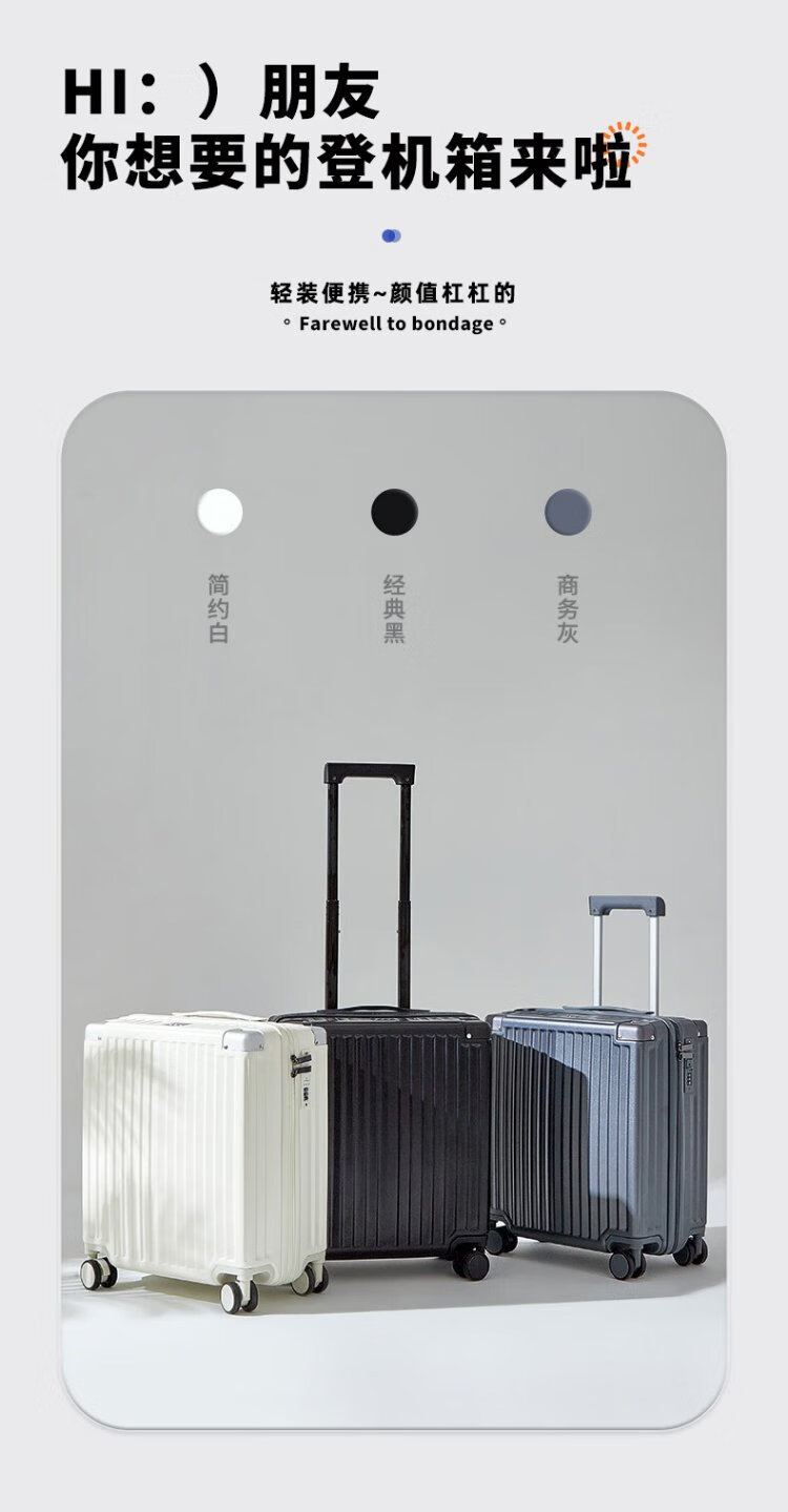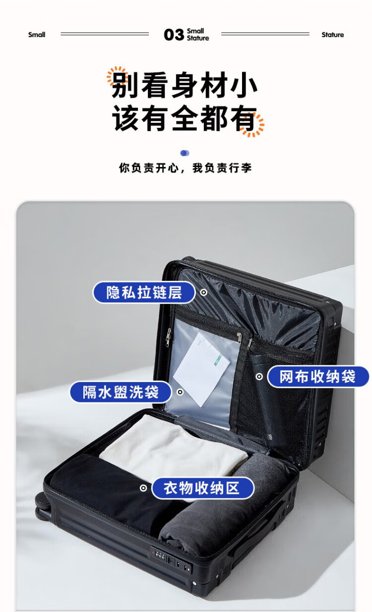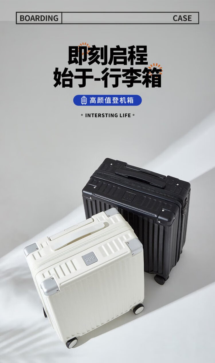 SOO suitcase dry and wet separation small suitcase boarding case 18-inch password box trolley box short-distance box white