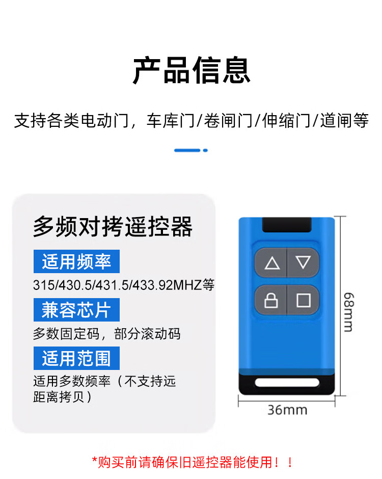 Huili multi-frequency copy remote control electric door garage door roller shutter gate telescopic door key lifting lever copy remote control white