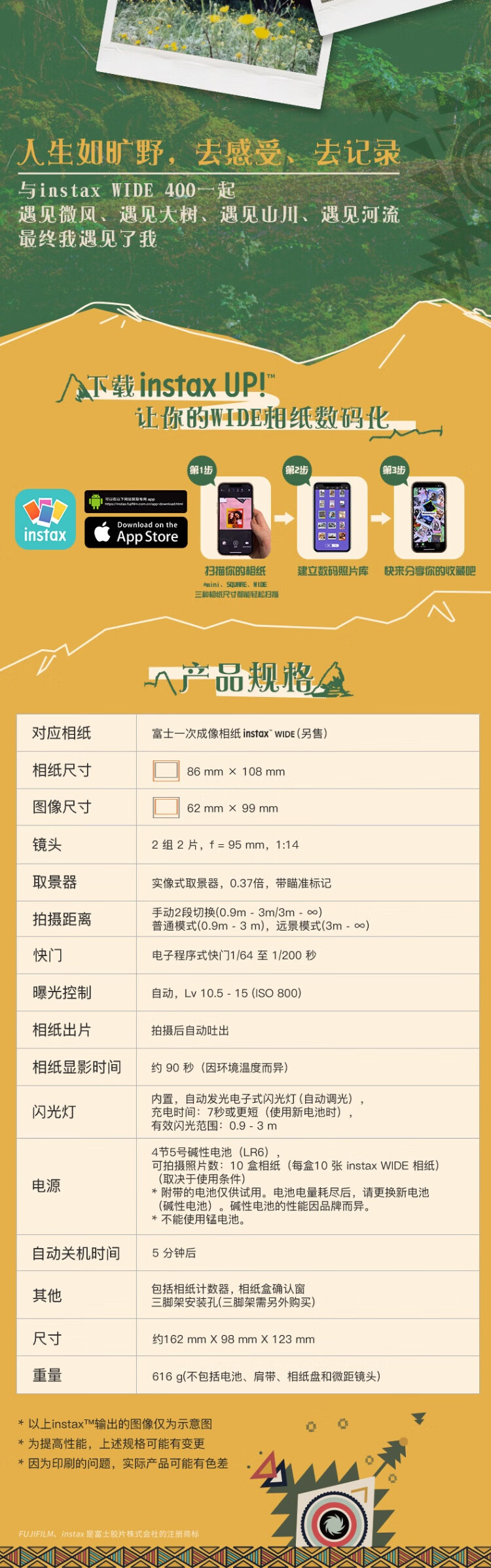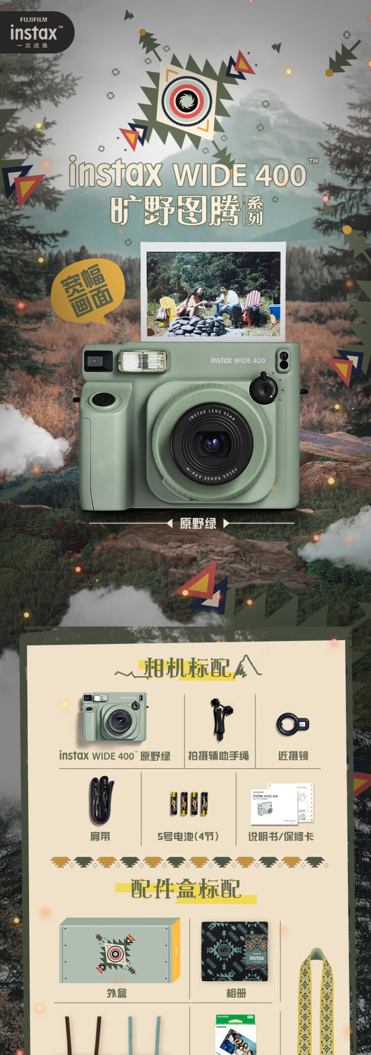 INSTAX Fuji instax instant instant camera wide wide field of view WIDE400 wilderness green (WIDE300 upgrade)