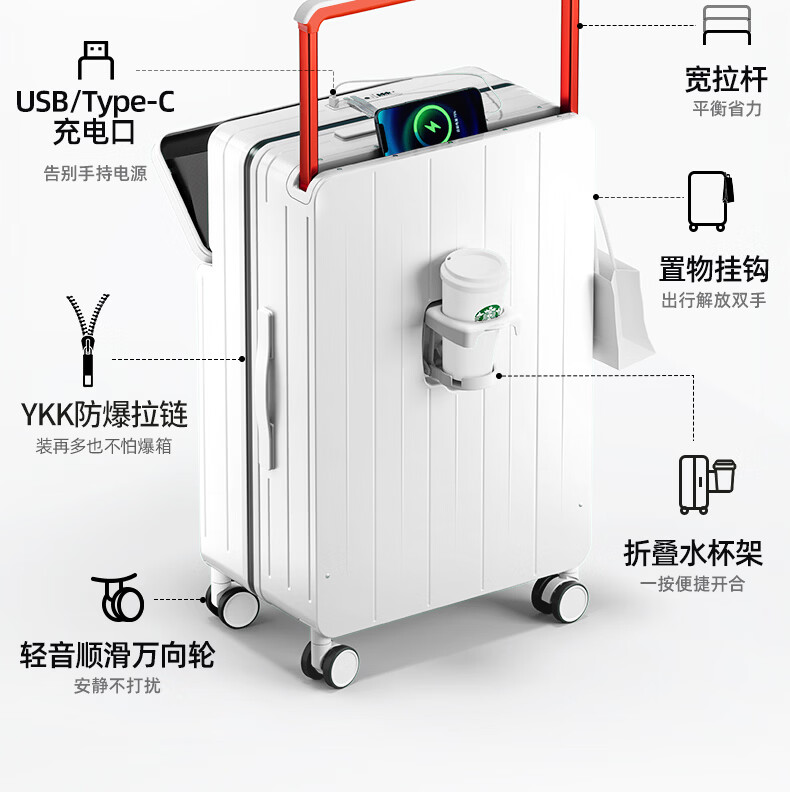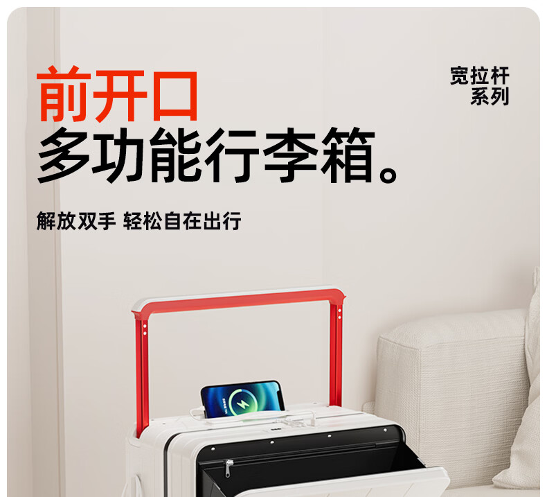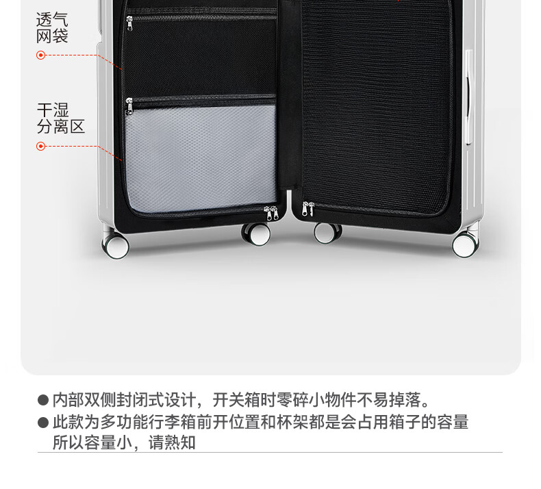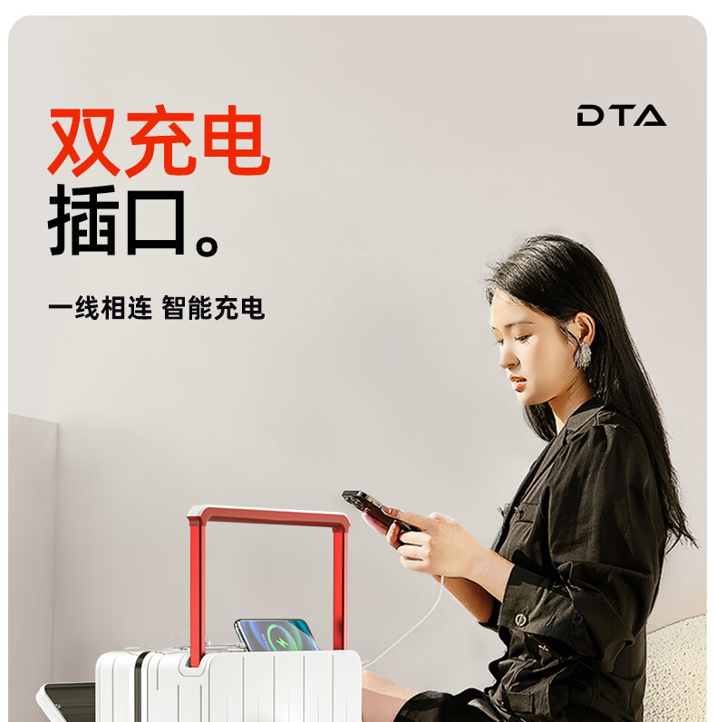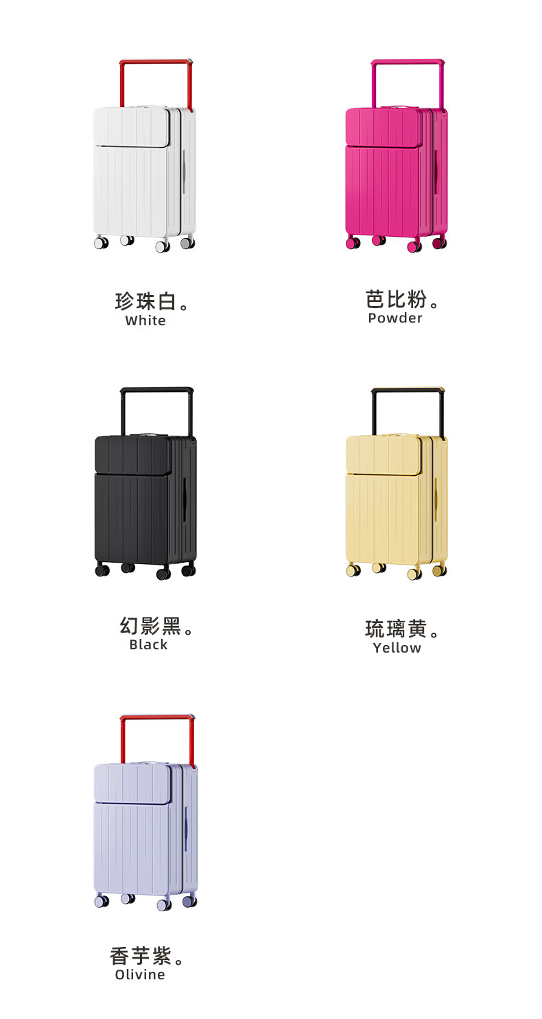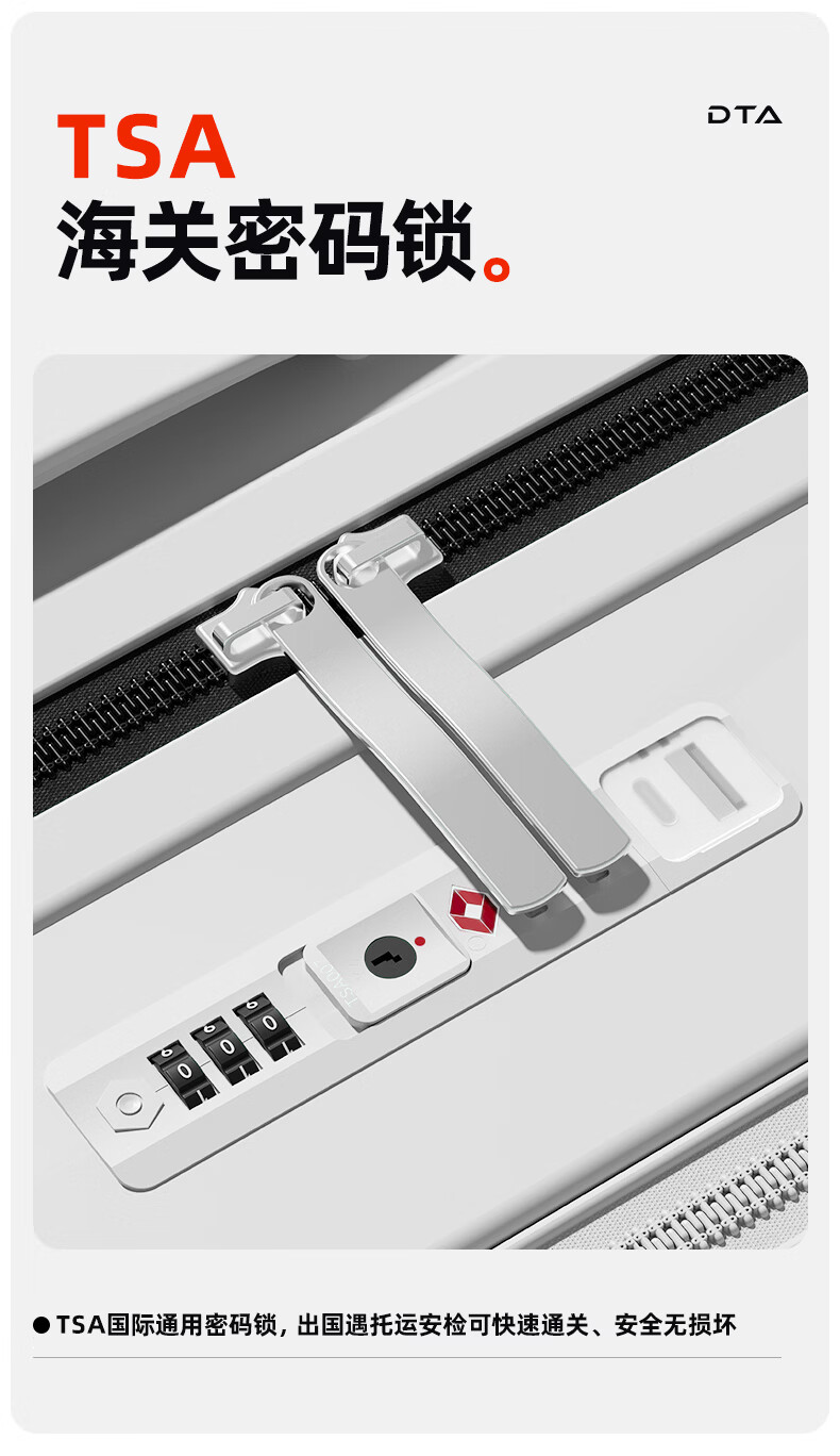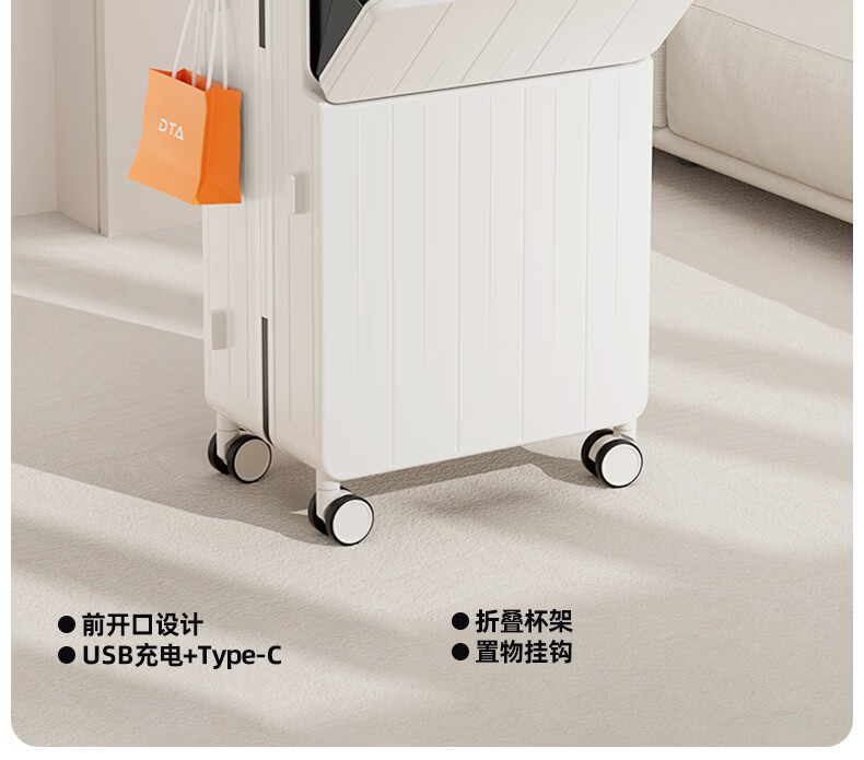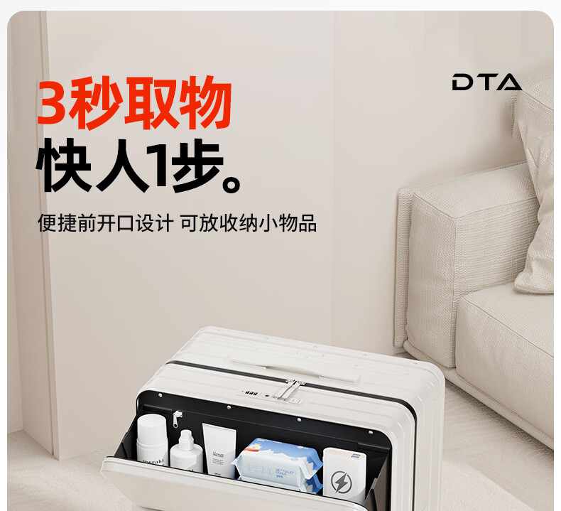 DTA suitcase trolley case women's front opening multi-functional wide trolley suitcase password leather suitcase male black 20 inches