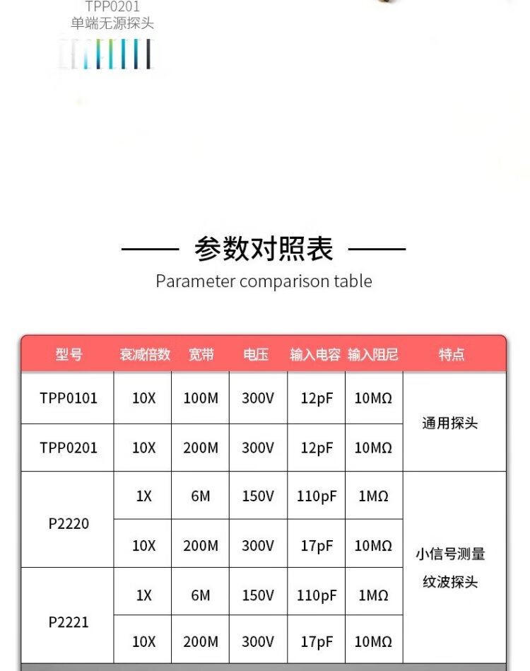 TEKTRONIX TPP0201 oscilloscope passive probe bandwidth 200MHz attenuation 10X 1-year maintenance