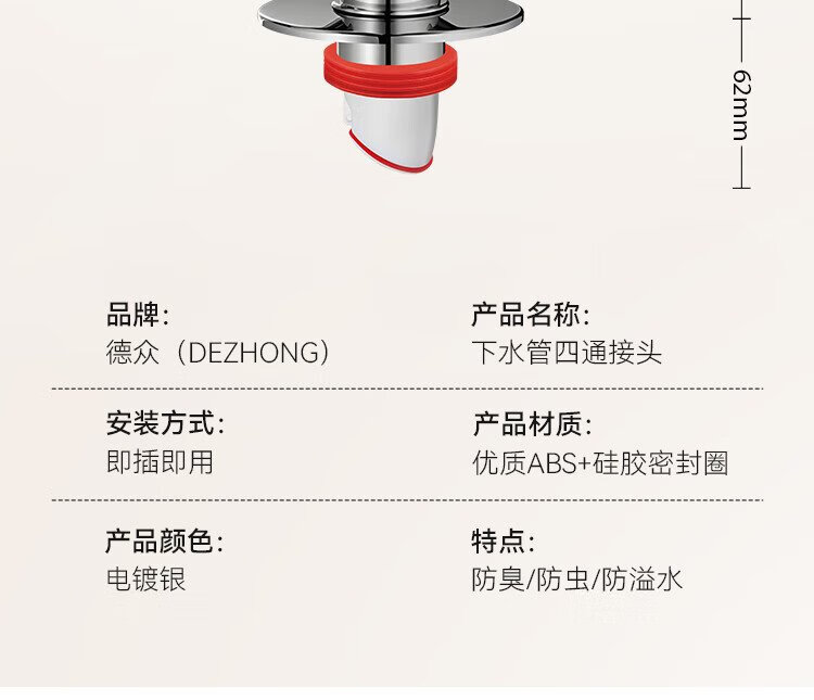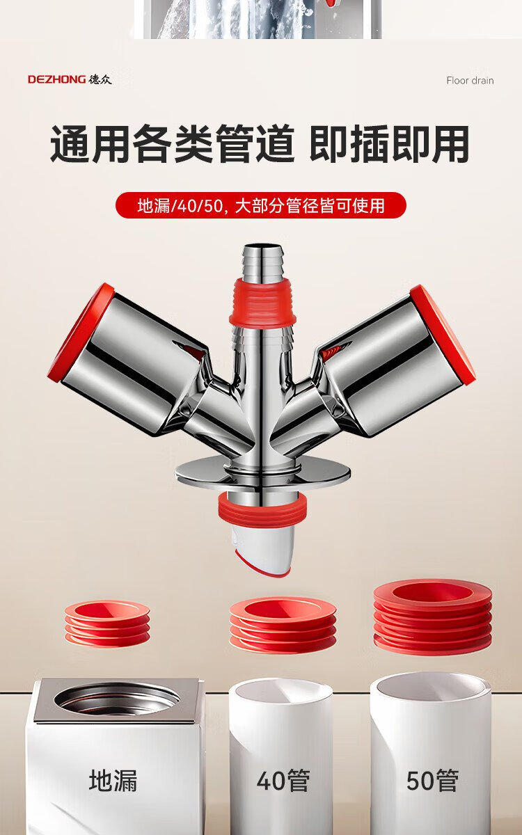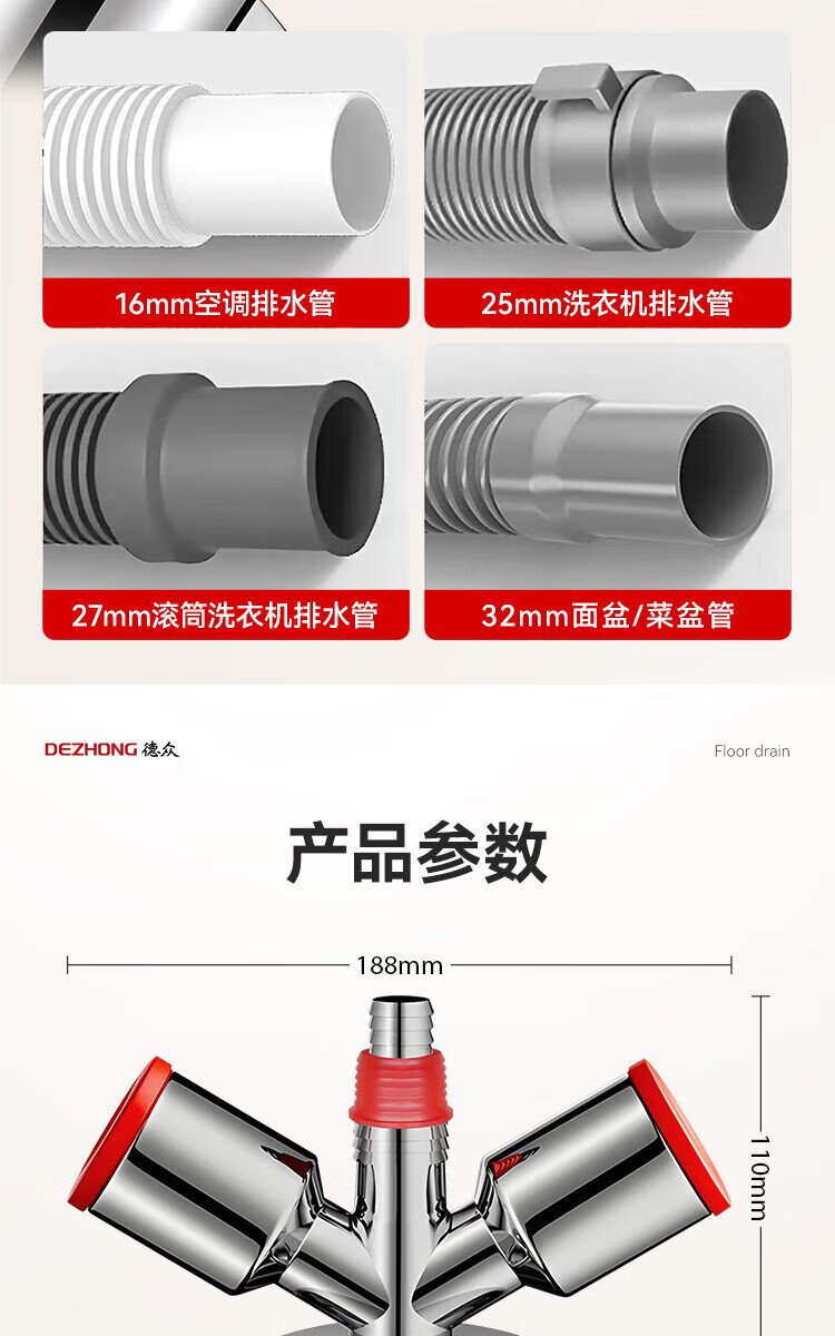 Dezhong washing machine drain four-way four-in-one floor drain drain pipe drain pipe joint P202