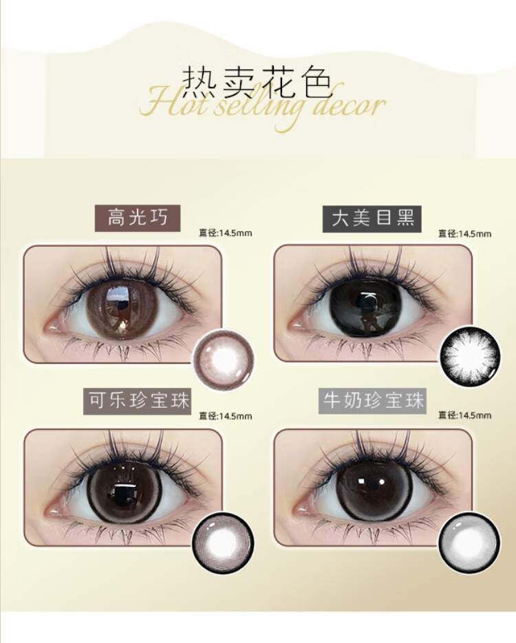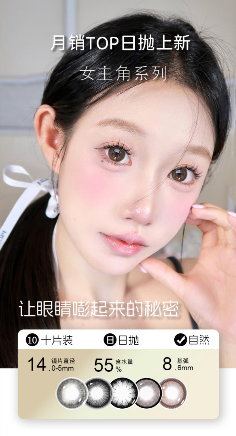 Duoxiu Daily Disposable 10-Piece Color Contact Lenses Natural Mixed Size Diameter Color Contact Lenses High Gloss 0 Degree