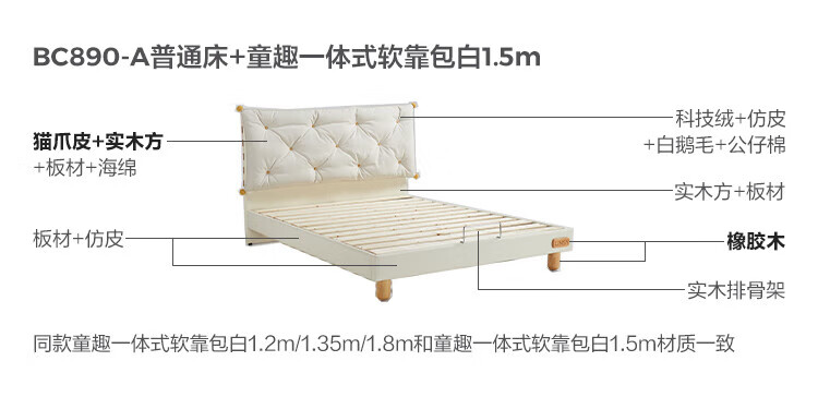Lin's home children's bed modern simple boy's bedroom girl princess bed small apartment single bed soft bedside BC890