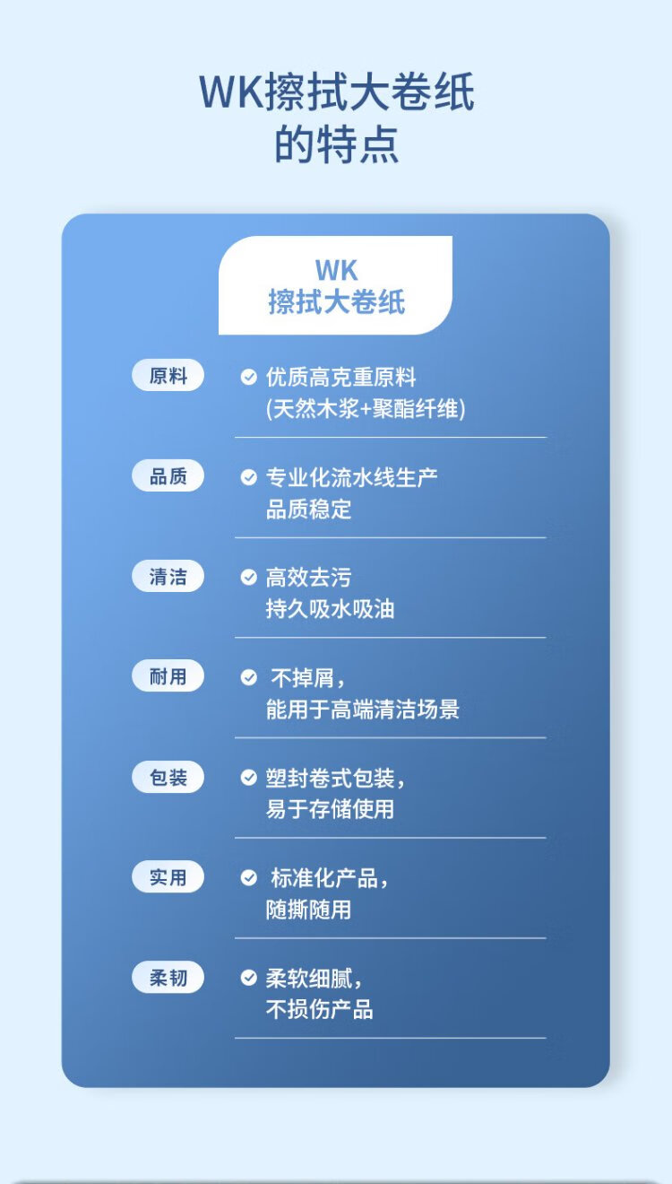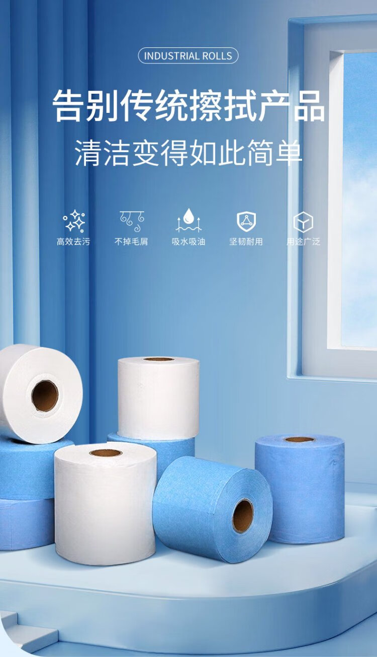 WK industrial wipe paper dust-free paper non-woven fabric oil-absorbent water-absorbent roll paper auto repair machinery maintenance factory laboratory oil wipe paper dust removal paper white 12.5*38cm