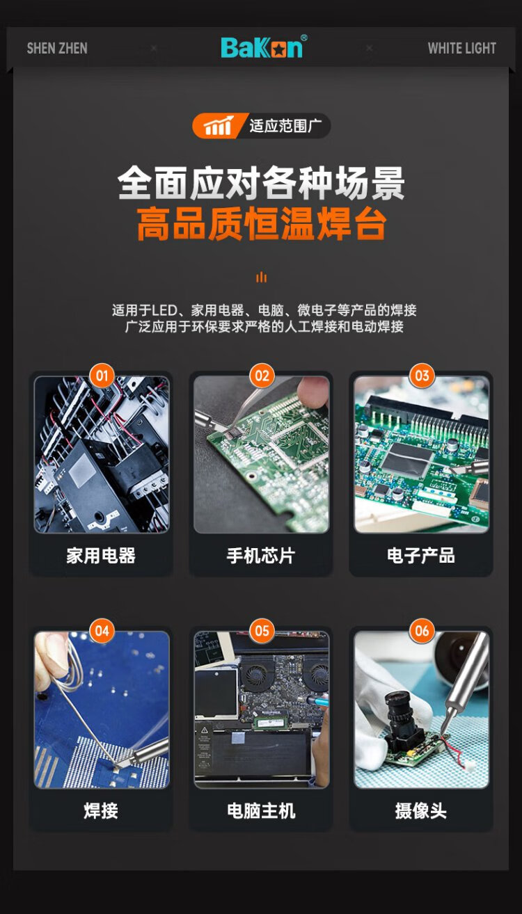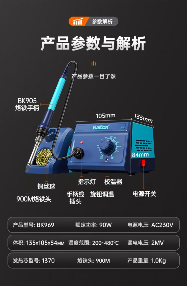 Bakon white light constant temperature soldering station internal heating electric soldering iron home maintenance temperature control adjustable temperature 90W soldering electric soldering iron BK969