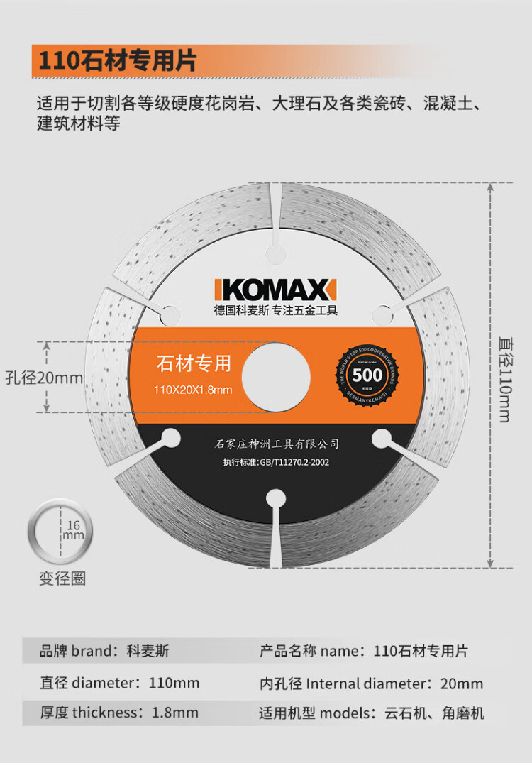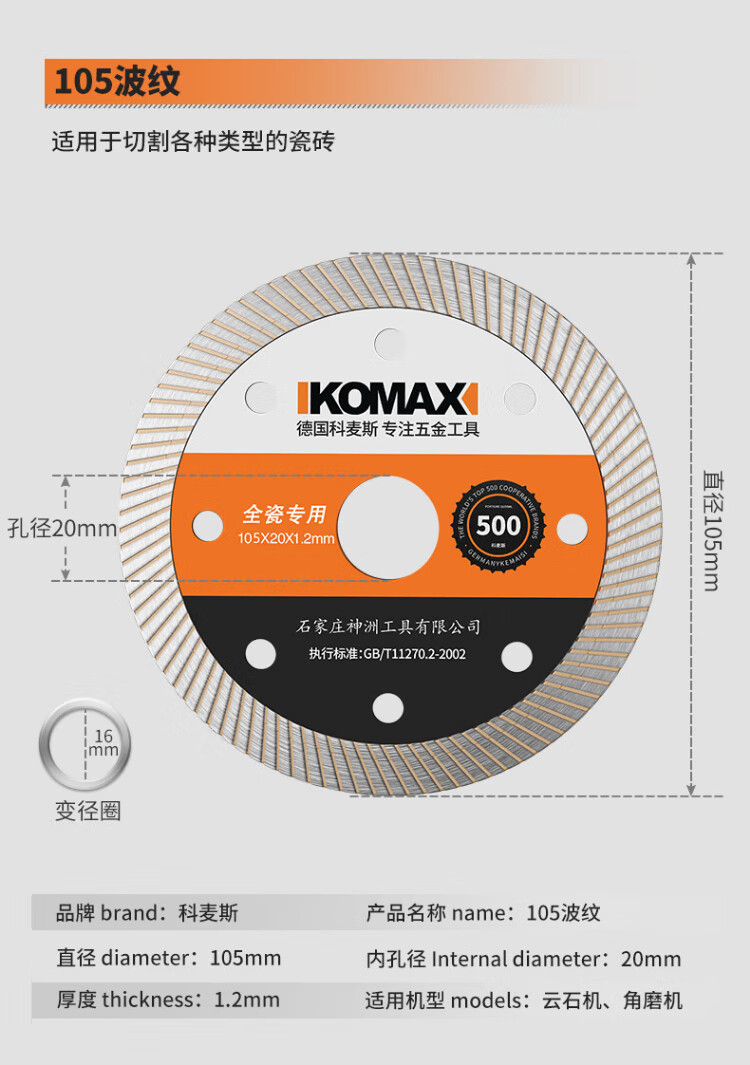 Komax ceramic tile cutting piece vitrified tile ultra-thin dry cutting special ceramic stone slotting diamond saw blade cutting machine