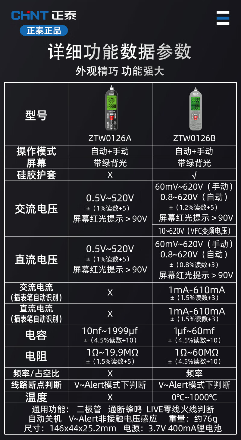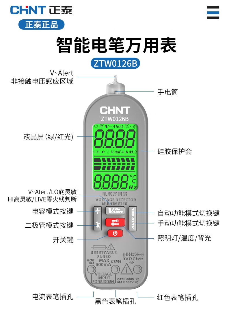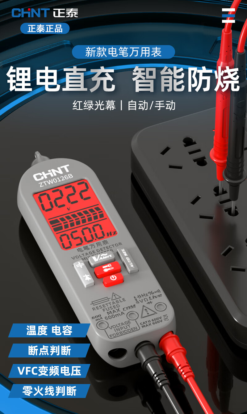 CHNT multimeter lithium battery rechargeable multi-function digital display multimeter electrician special smart anti-burn high-precision electricity test pen