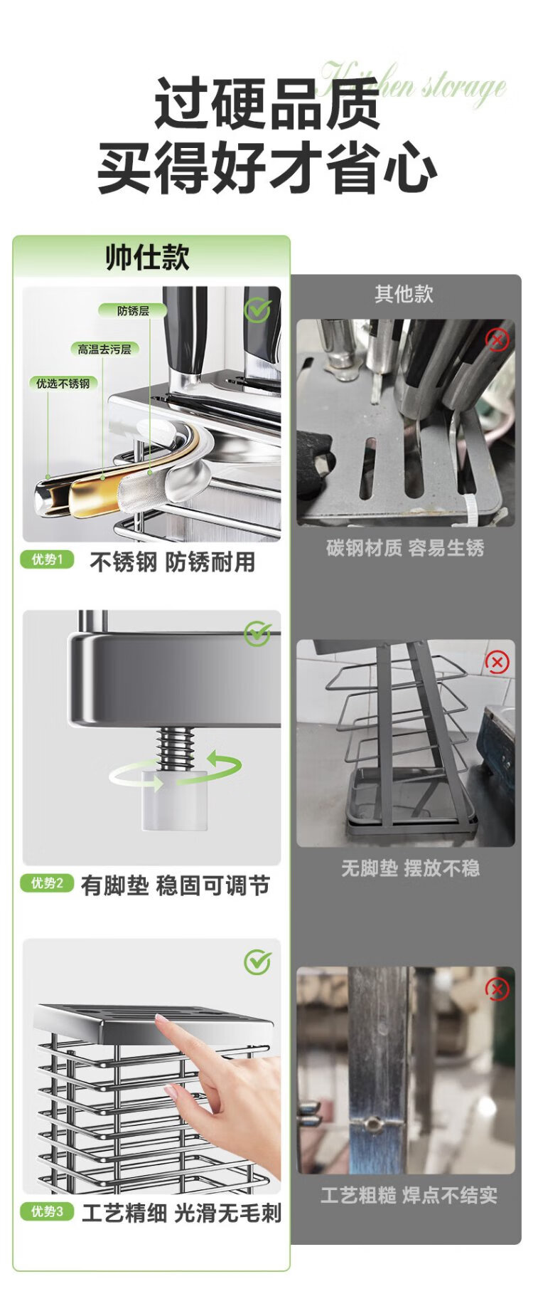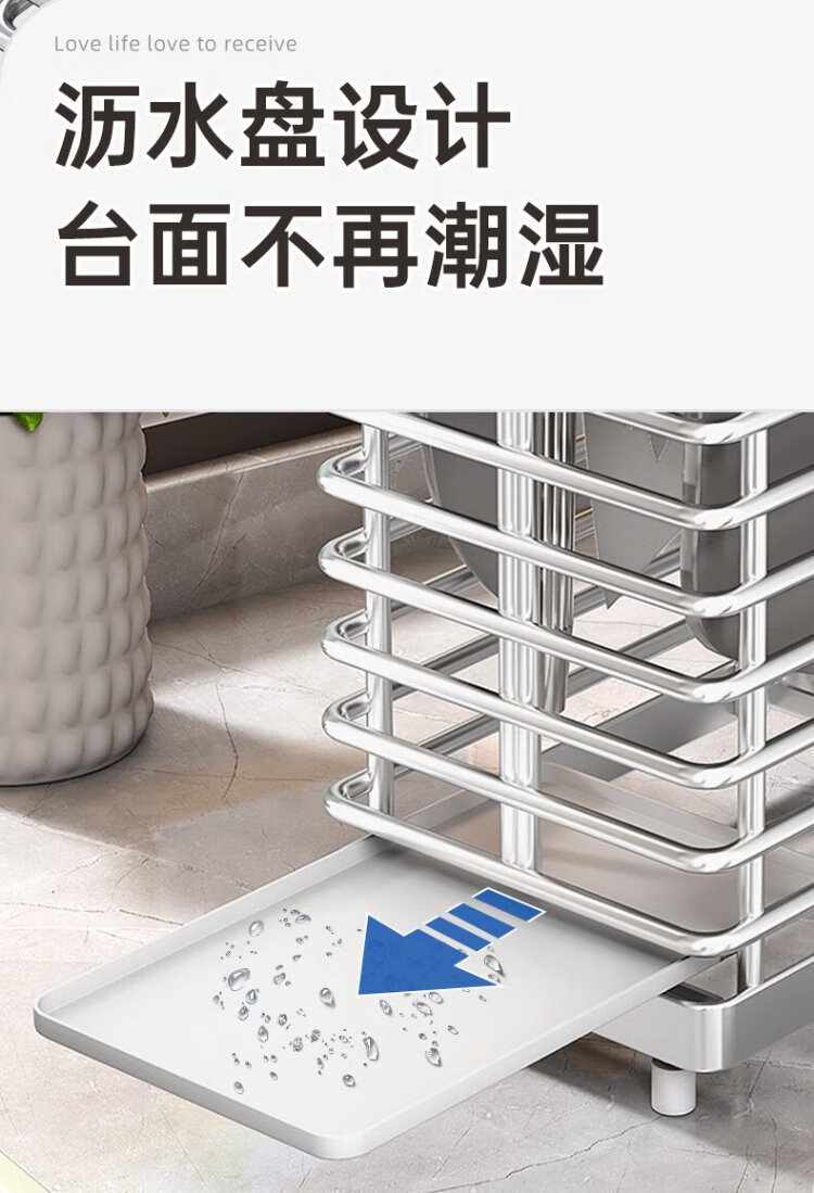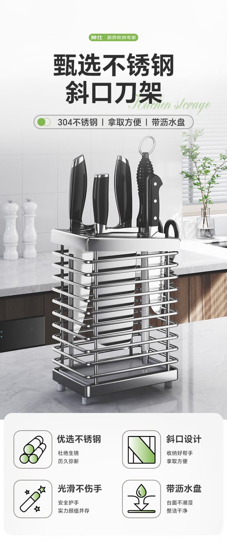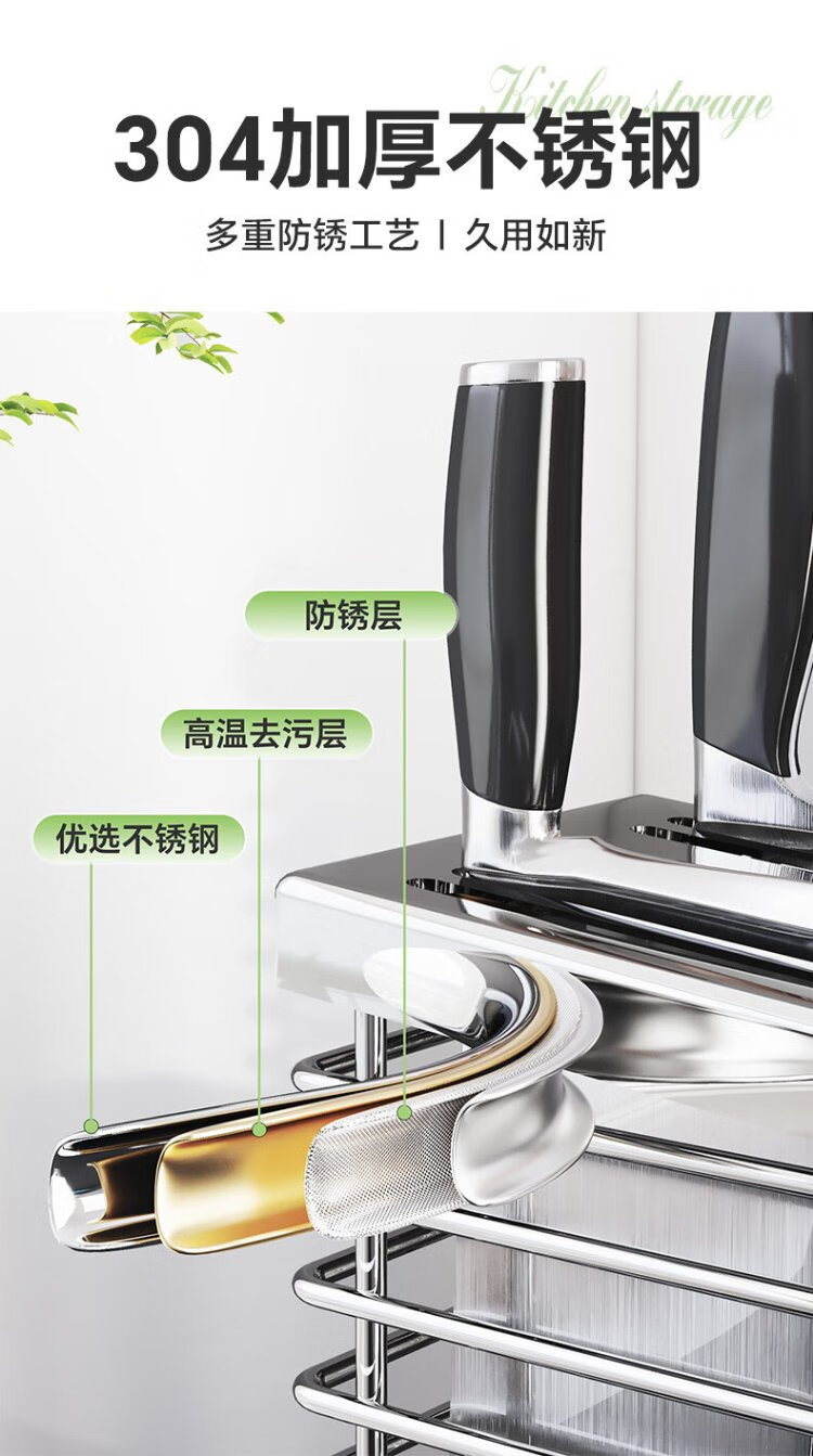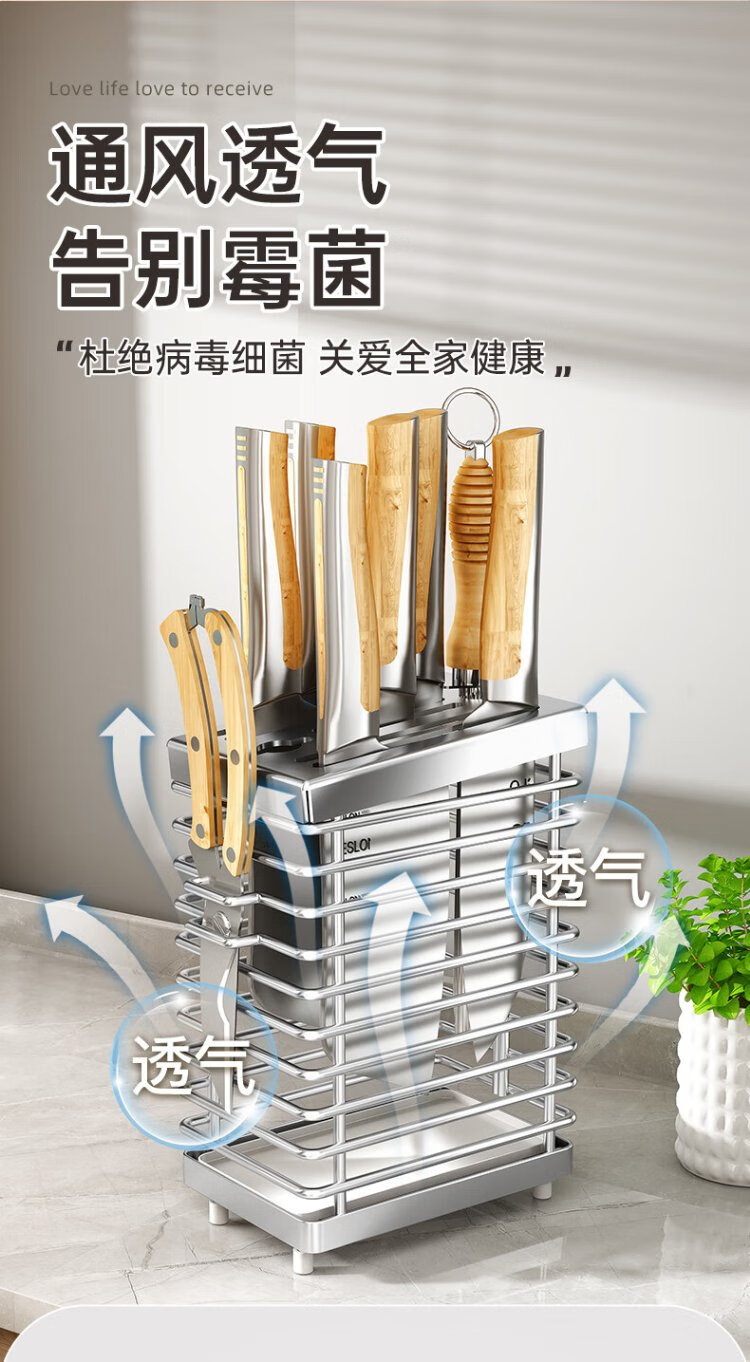 Shuaishi kitchen stainless steel knife holder kitchen knife storage rack chopsticks and spoon utensil storage rack knife holder countertop drain rack
